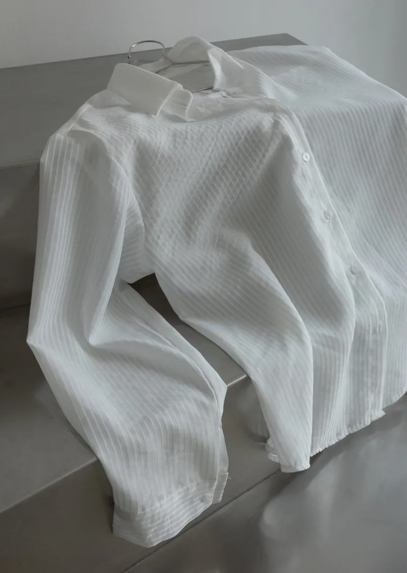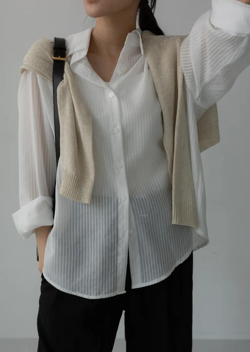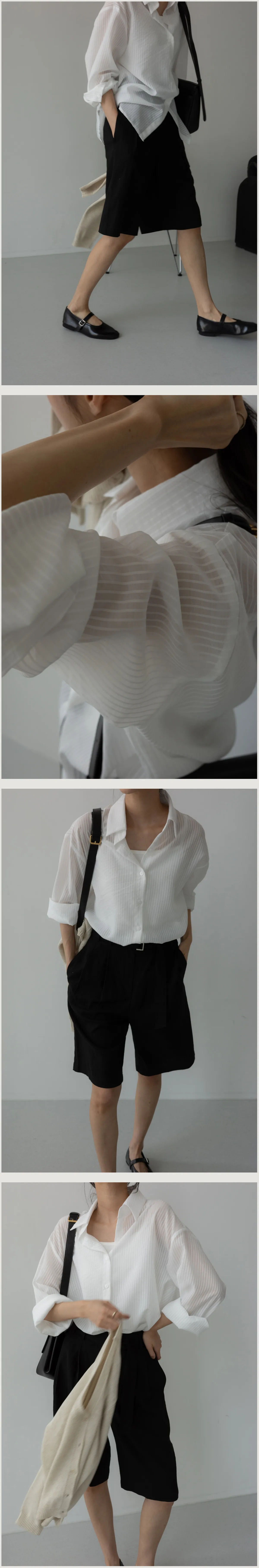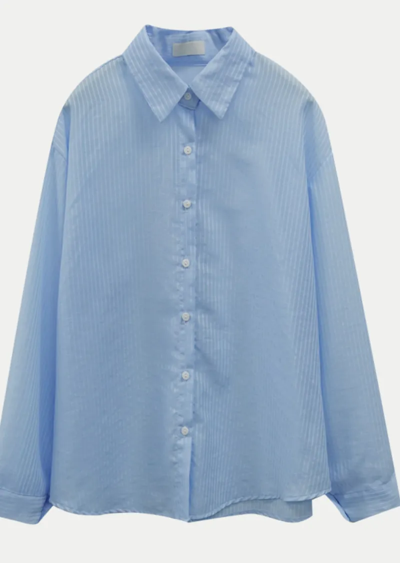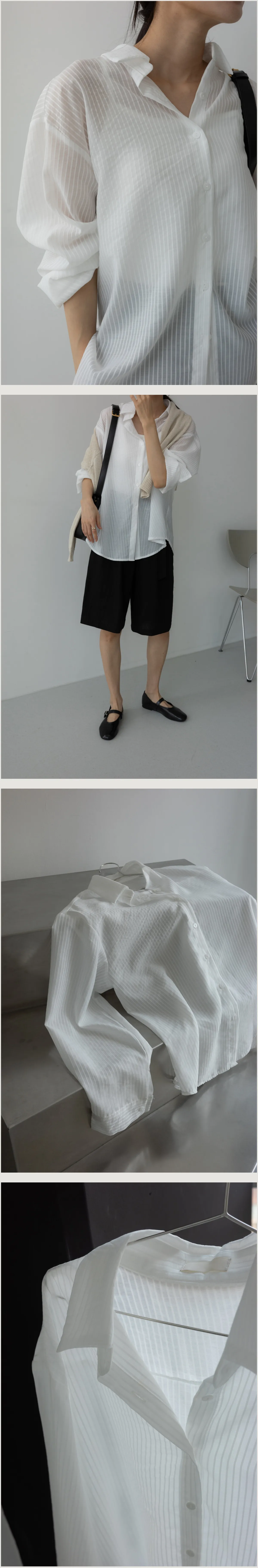 春夏舒適透膚寬鬆長袖襯衫