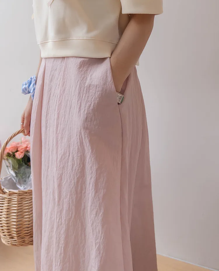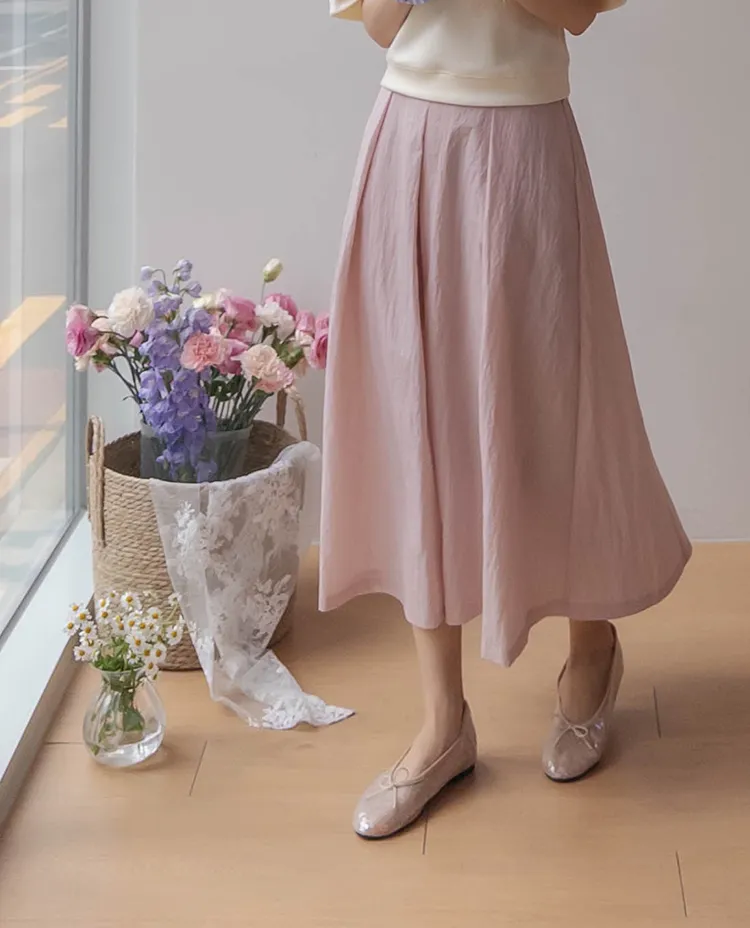 輕盈舒適摺線裙擺A字剪裁中長裙