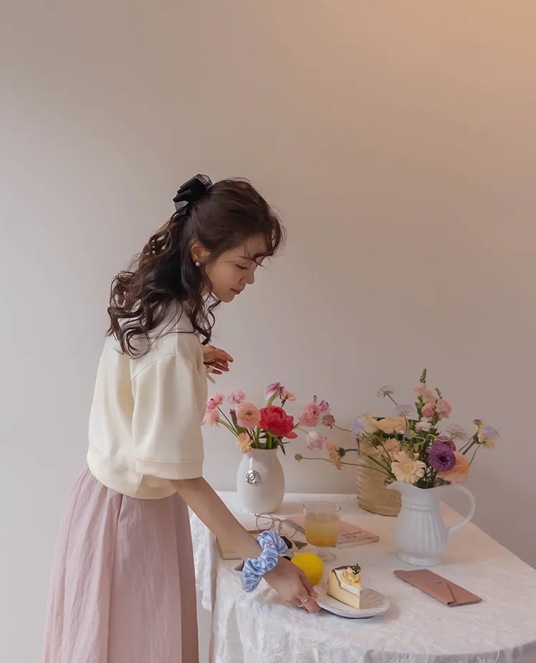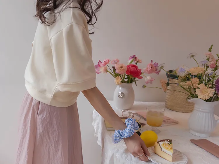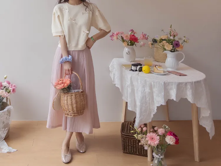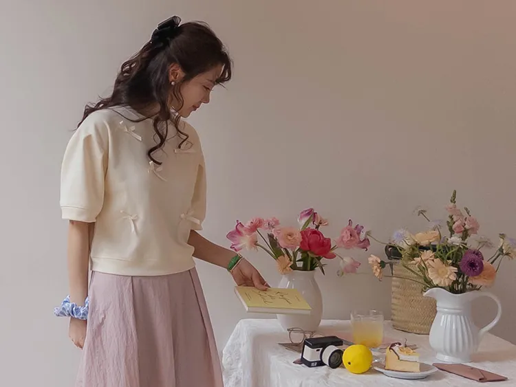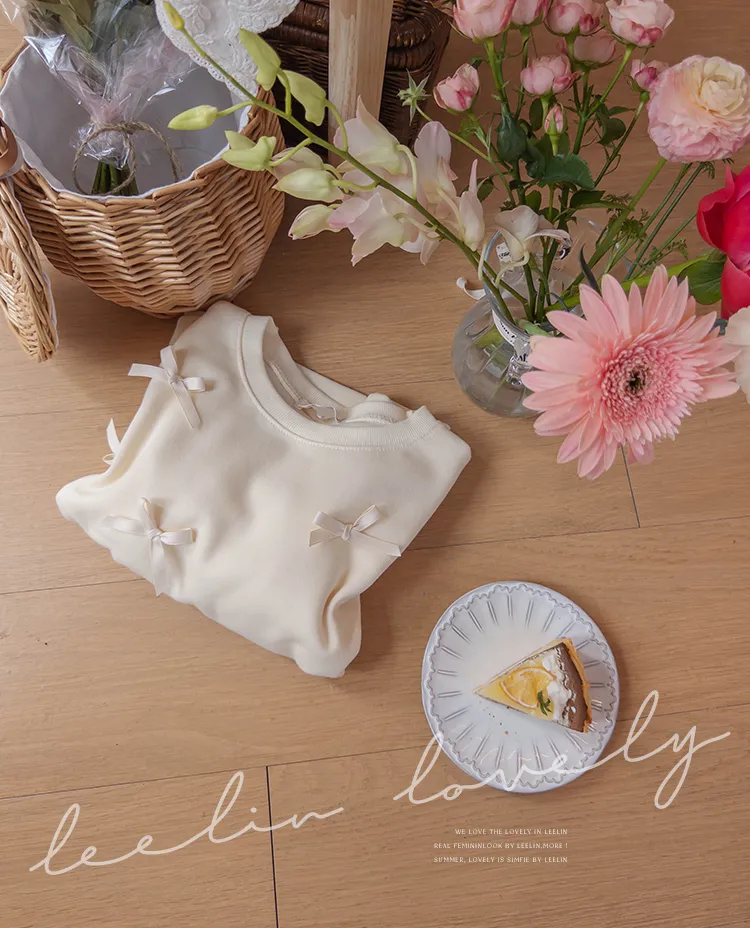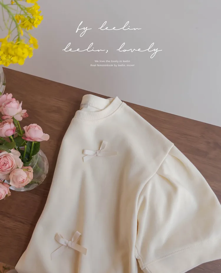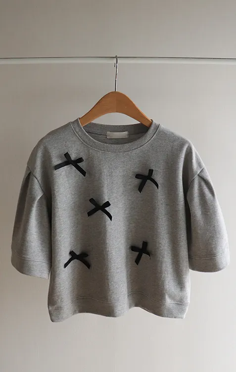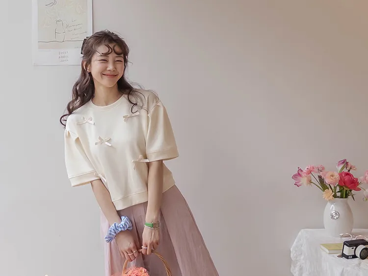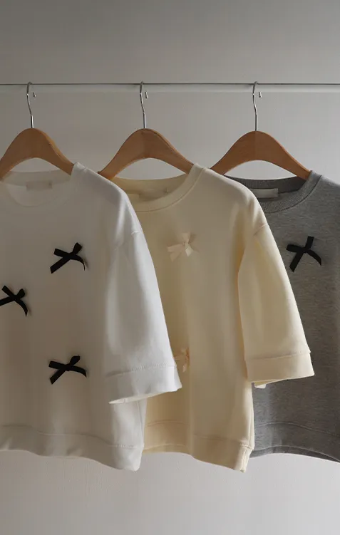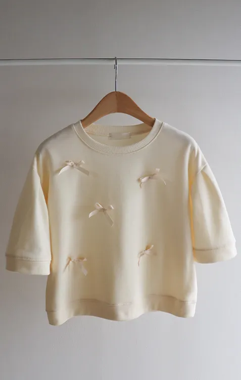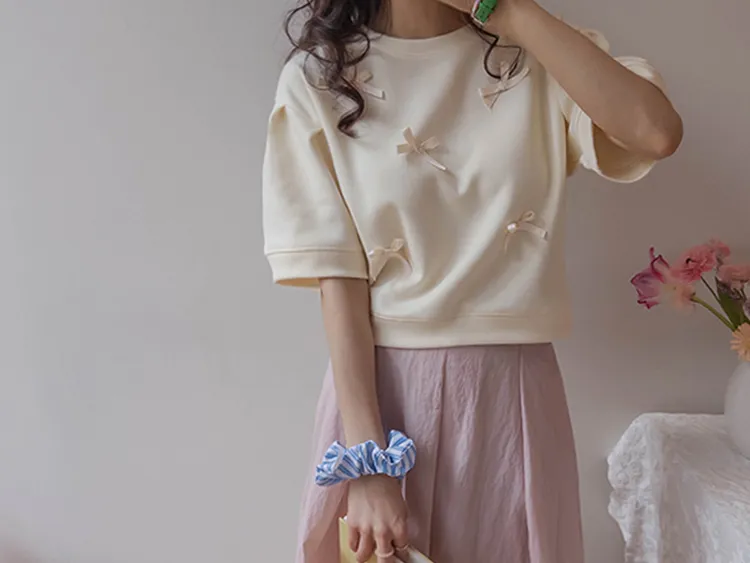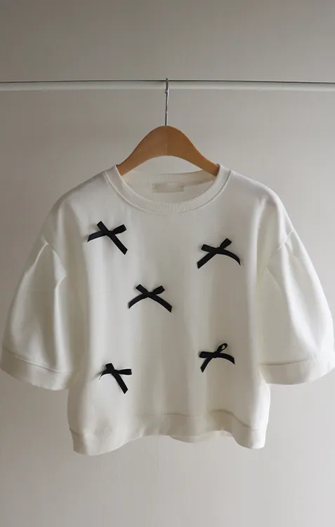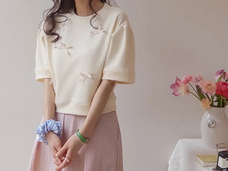 【立體蝴蝶結細節,可愛又百搭♡】 【中短款】 【五分袖長遮蓋手臂線條】 【適合搭配任何下裝的日常單品! 】
