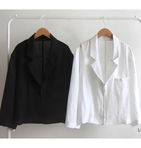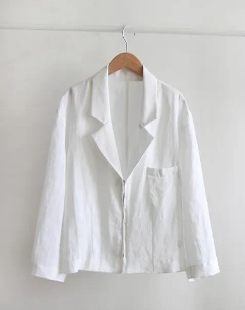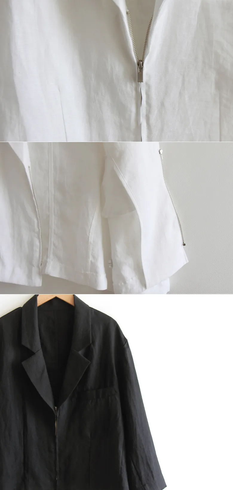 【亞麻材質】【拉鍊款亞麻外套】【簡潔俐落
