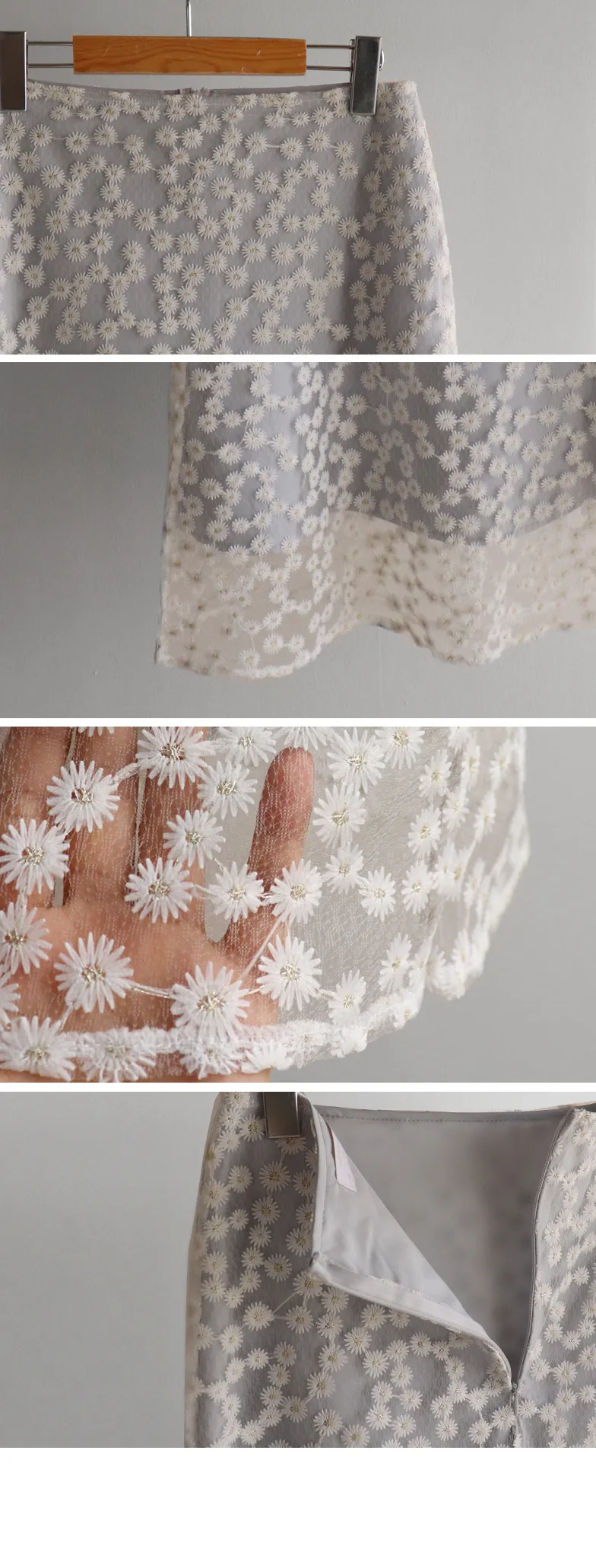 【飄逸的雙層裙擺,女人味十足♥】 【雛菊花朵刺繡,增添春日氣息與奢華感】 【金線刺繡增添閃耀】 【微透視布料】