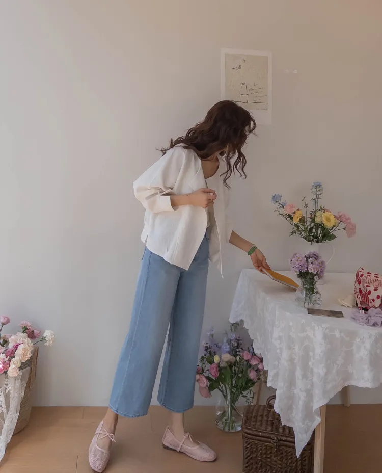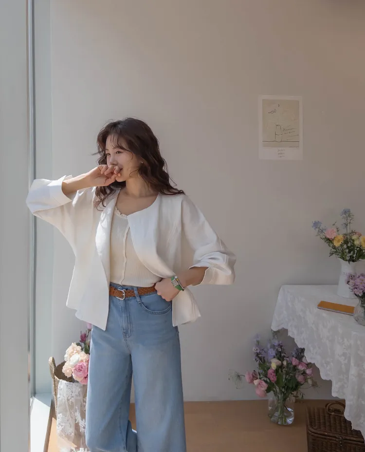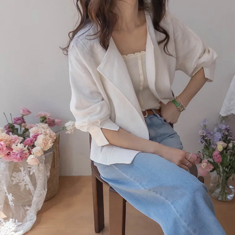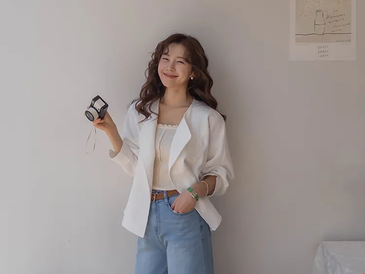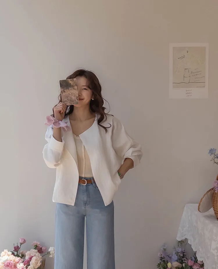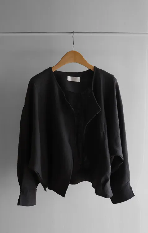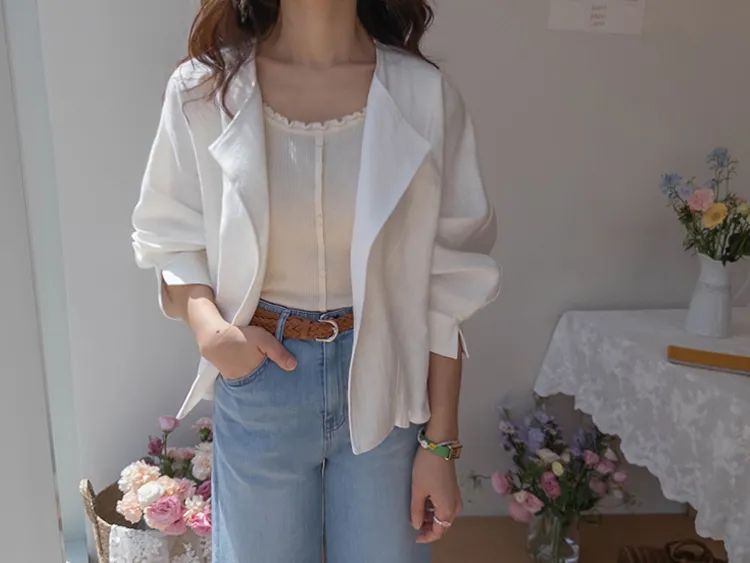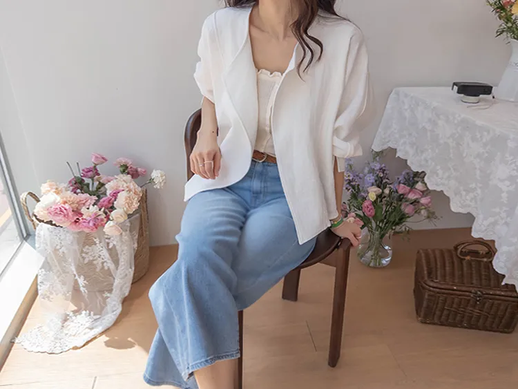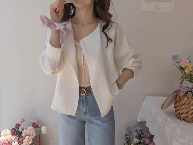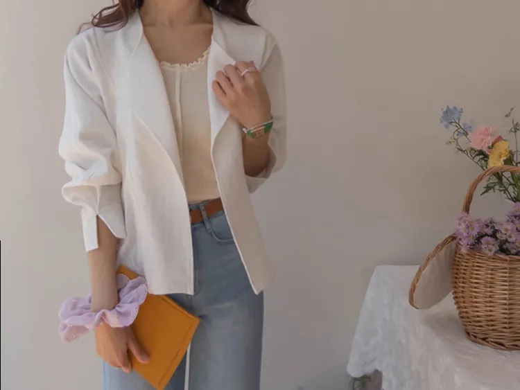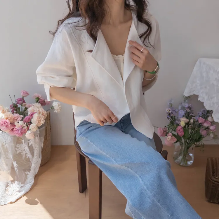 雅緻漂亮褶襉剪裁設計亞麻外套