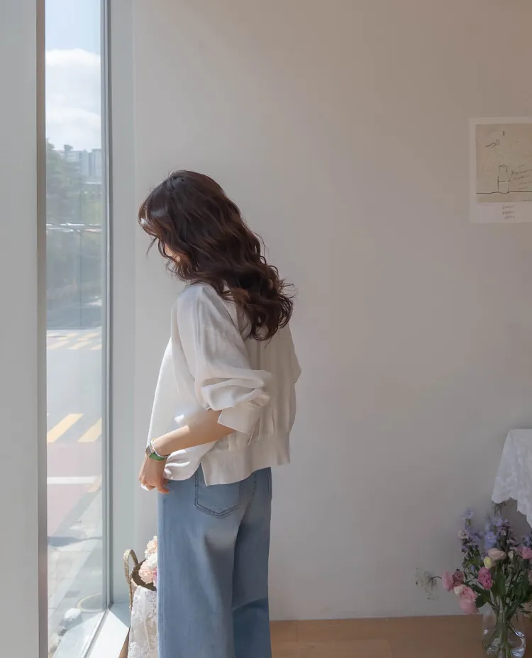 【飄逸~非常漂亮的剪裁亞麻外套♥】 【100%亞麻,穿起來很酷~】 【豐盈的褶襉設計,盡顯奢華廓形】 【與連身裙/牛仔褲/休閒褲/裙子都很搭! 】