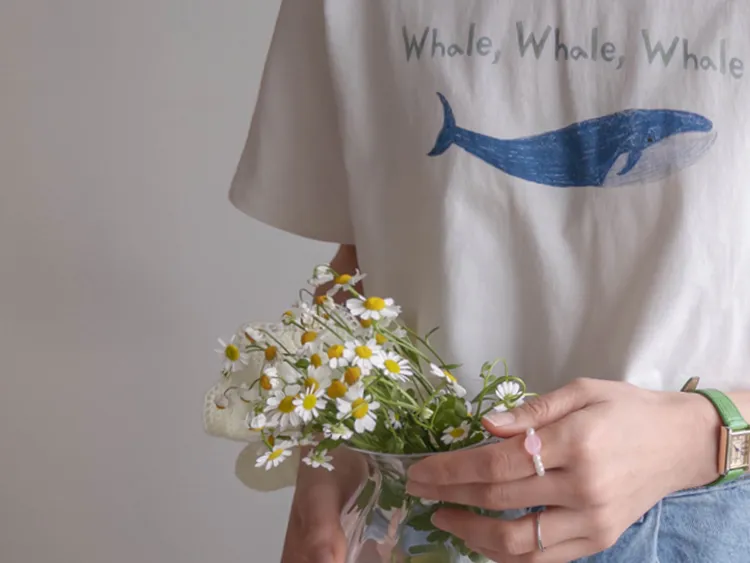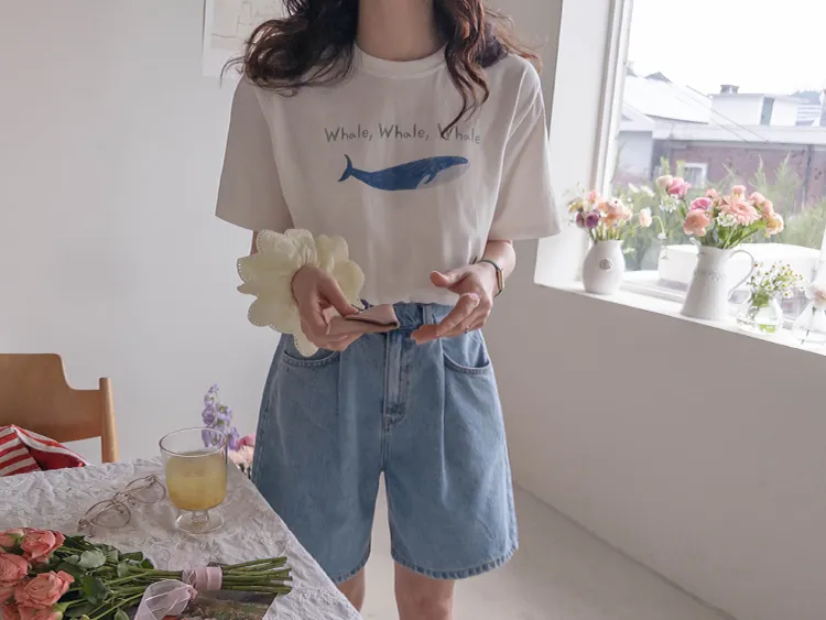 清新鯨魚印花柔軟舒適短袖上衣 現貨
