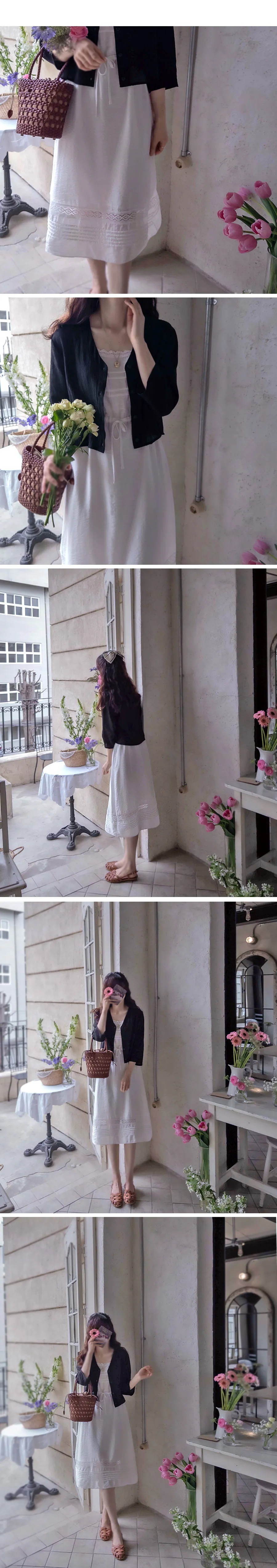 優雅波浪蕾絲領口腰綁帶穿搭無袖連身裙