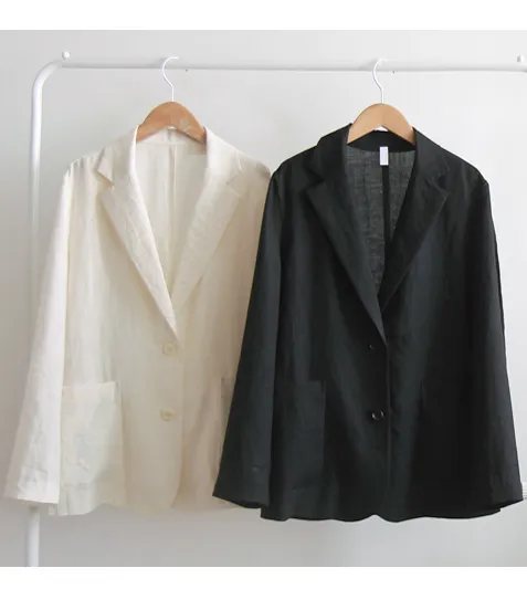 【比較柔軟有彈性的亞麻材質】 【鈕扣配置的簡約現代設計】 【從現在到夏天都可以穿,乾淨俐落又百搭】 【百搭的外套,無論在哪裡都能輕鬆穿著】 【推薦作為亞麻修身外套,為您的穿搭增添風格】