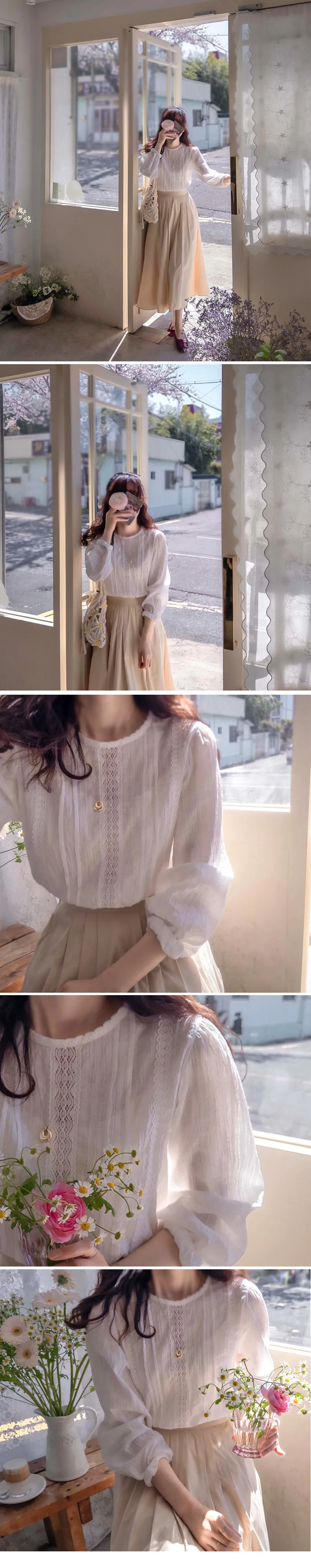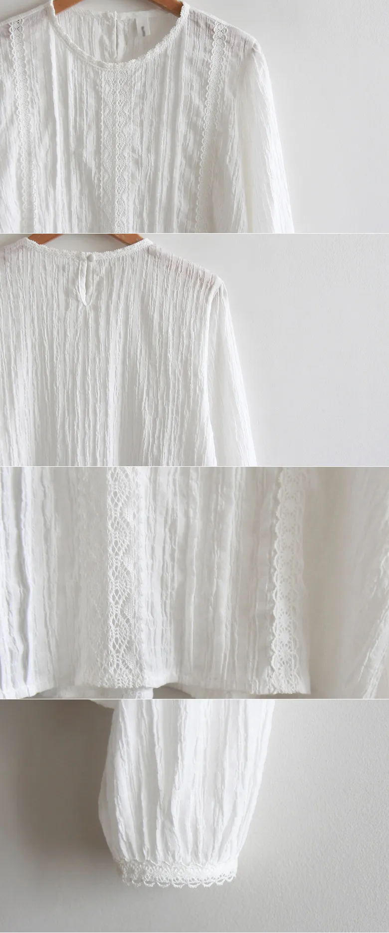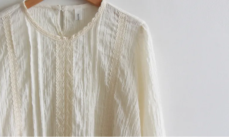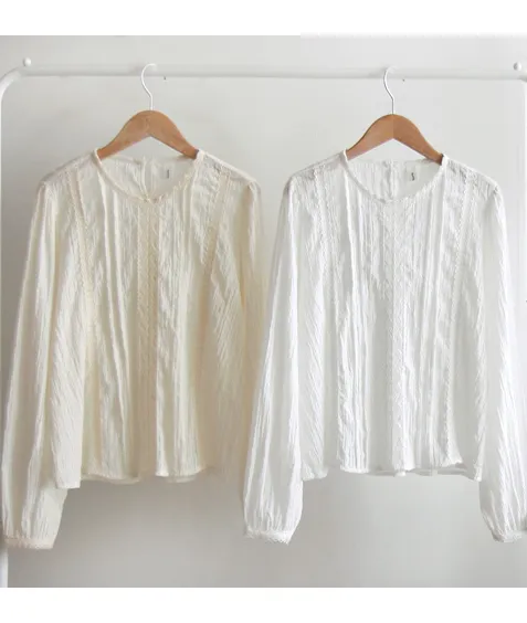 【作為一款優雅的上衣,從現在開始即使在夏天也適合穿著】 【帶有蕾絲的可愛上衣】 【精緻設計帶有褶皺的面料】 【穿著舒適的精緻版型】
