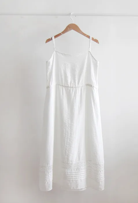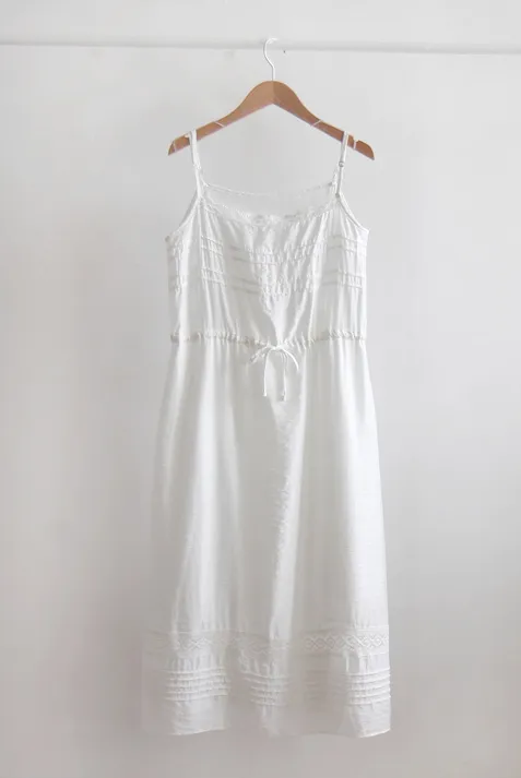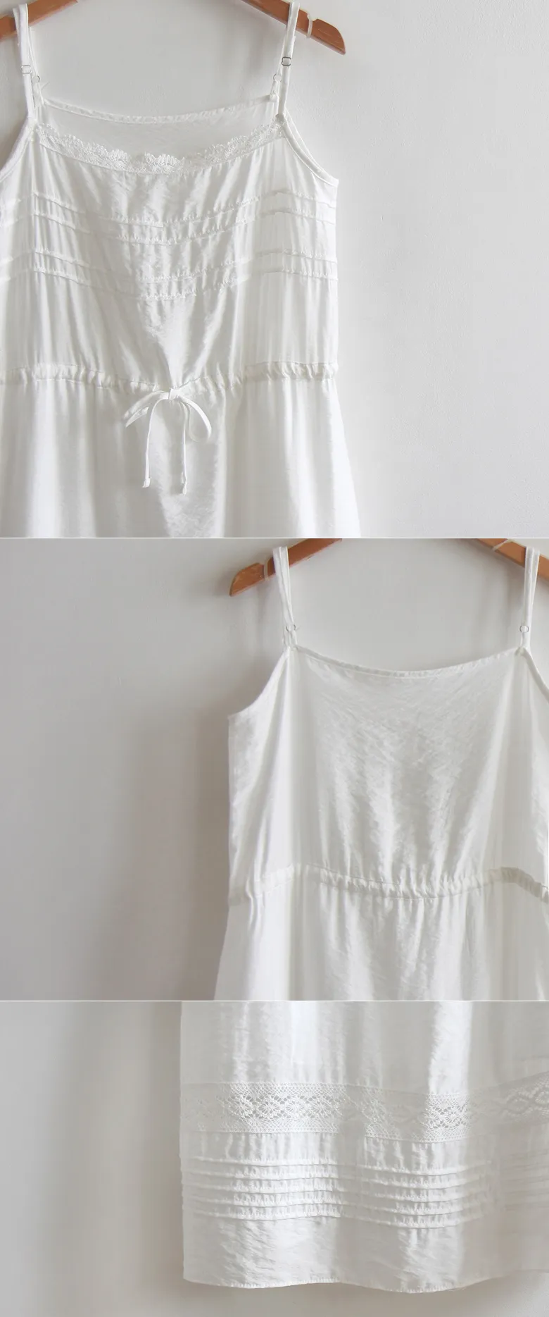 【可調式肩帶】【可調式腰綁帶】【波浪型蕾絲領口設計增添活潑感】【修身連身裙,搭配起來好看】【可作為層疊穿搭連身裙,打造華麗造型】【作為優雅的層疊連身裙,從現在到夏天都非常適合穿著】