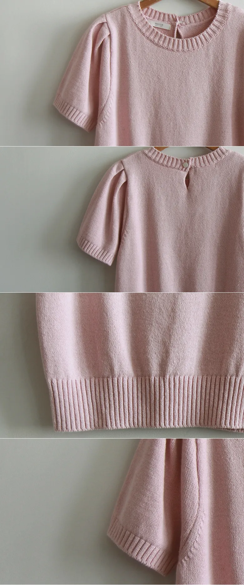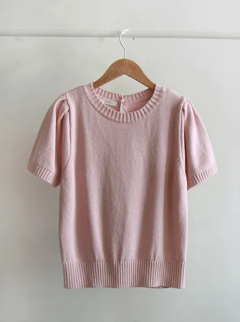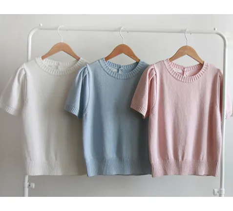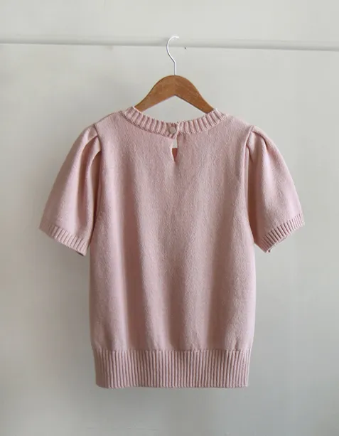【親膚棉質材質】 【分肩設計,後鈕扣設計,營造可愛氛圍】 【基本款卻又明亮可愛的穿搭】 【穿著舒適】 【基本款卻又優雅氣質的短袖針織衫】