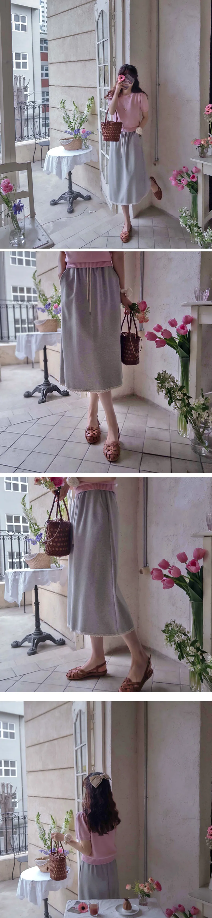 可愛下擺迷你波浪蕾絲腰綁帶中長裙