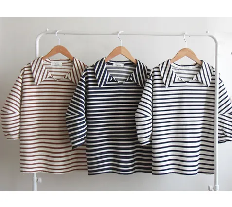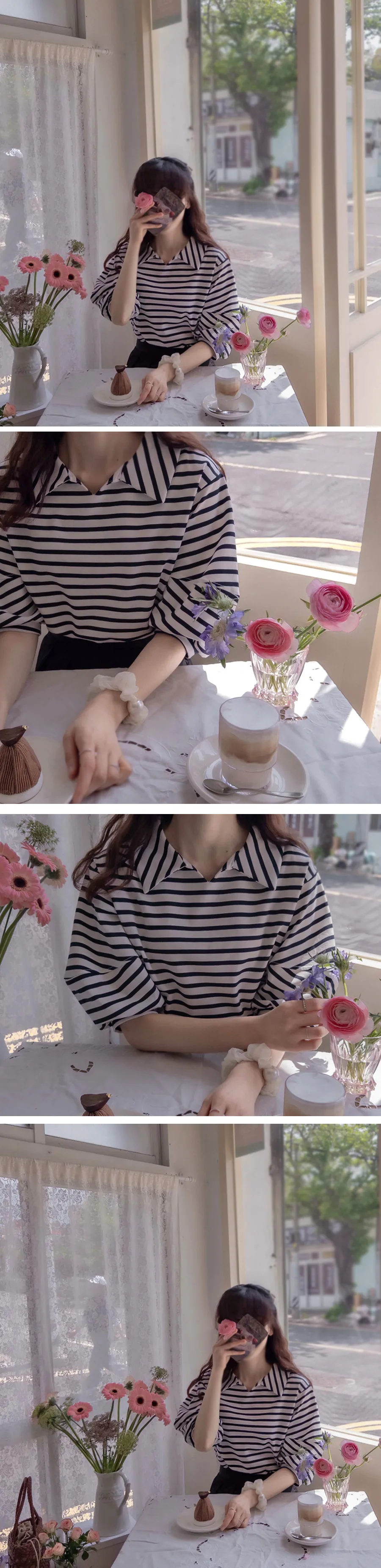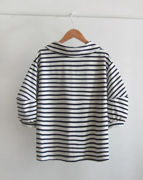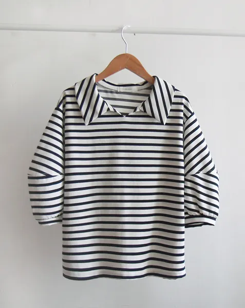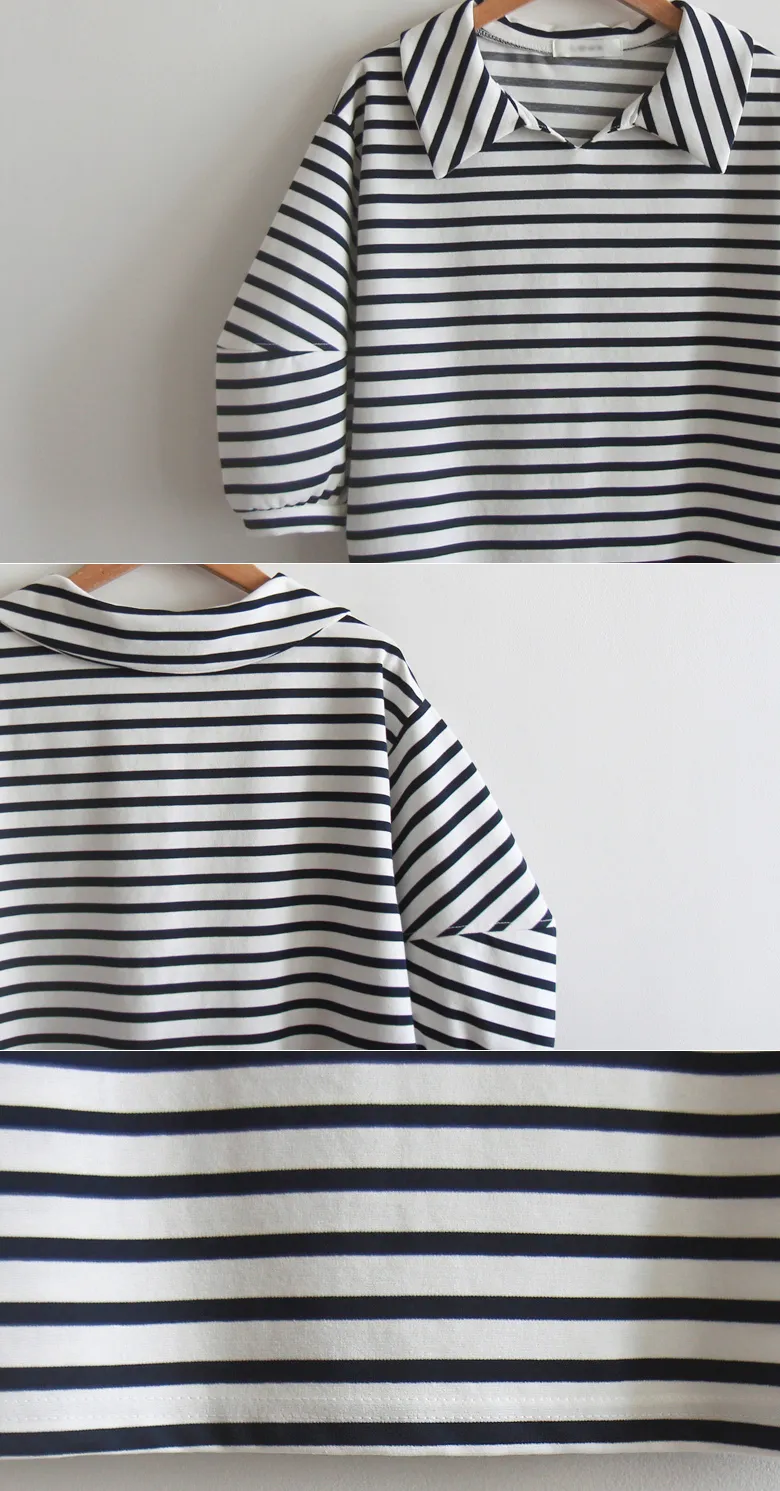 日常舒適圓潤線條袖子剪裁條紋上衣