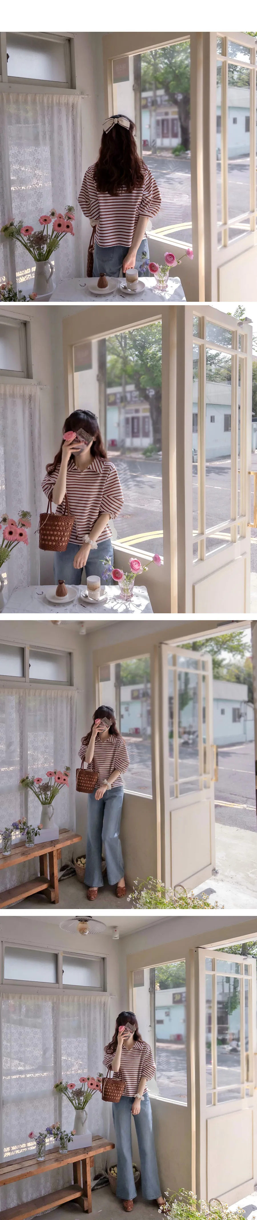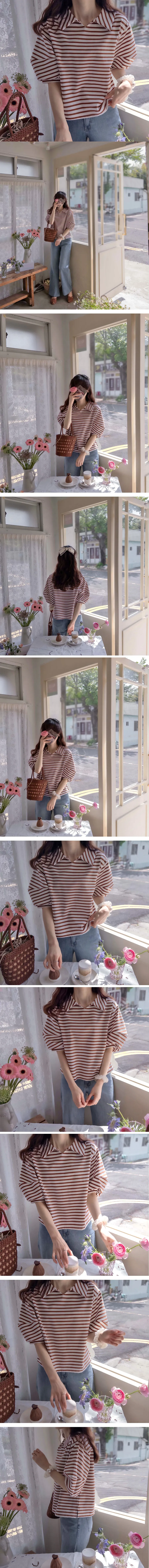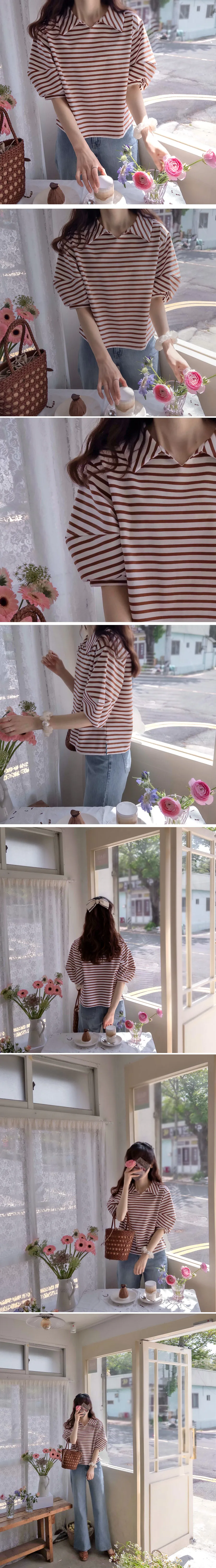日常舒適圓潤線條袖子剪裁條紋上衣