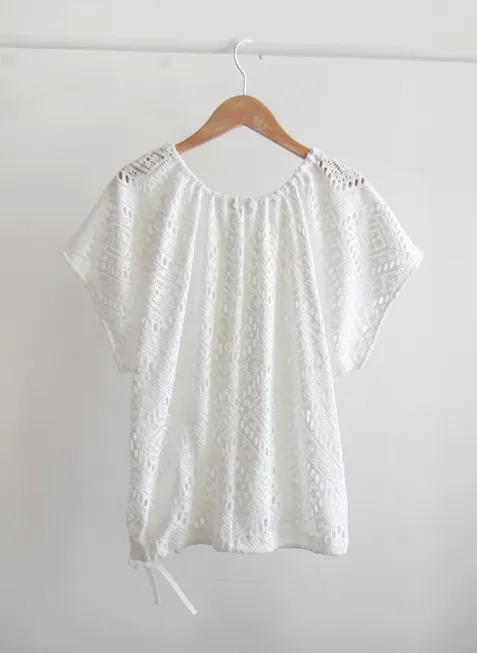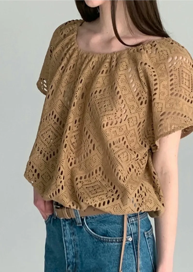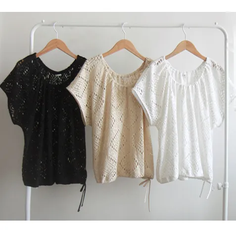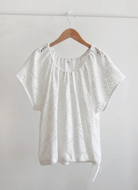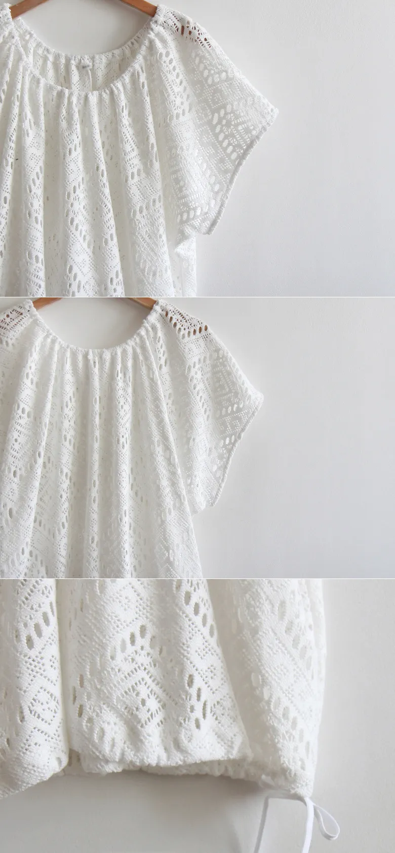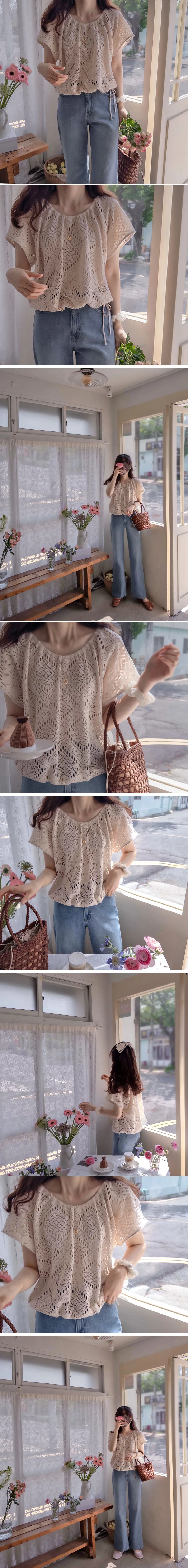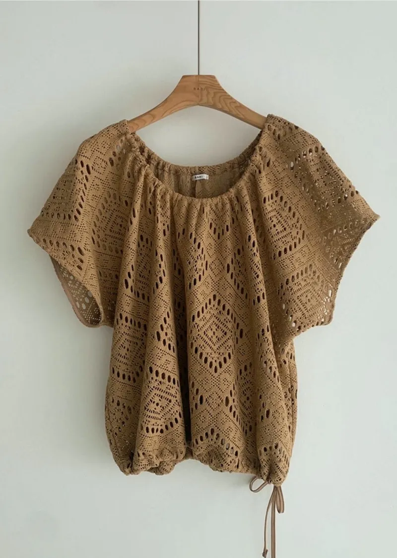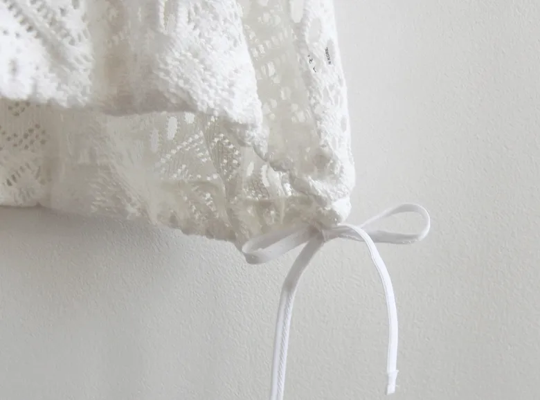 迷人輪廓下擺抽繩鉤針鏤空編織針織上衣