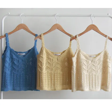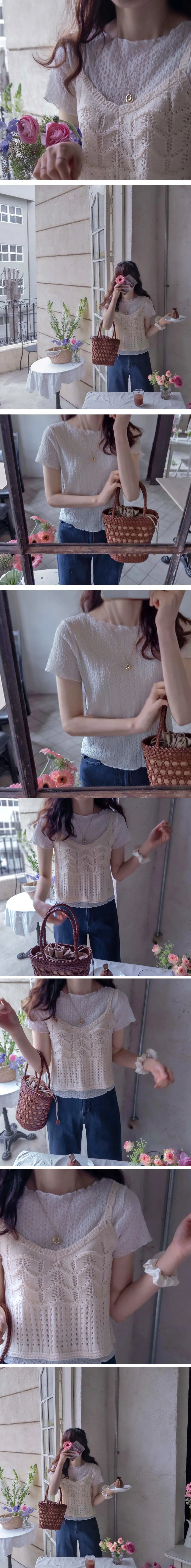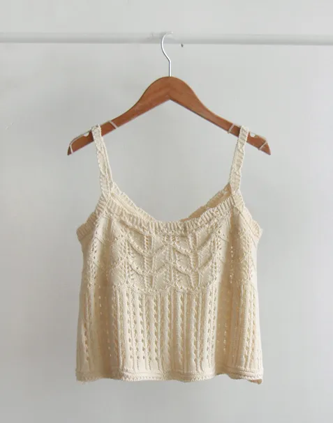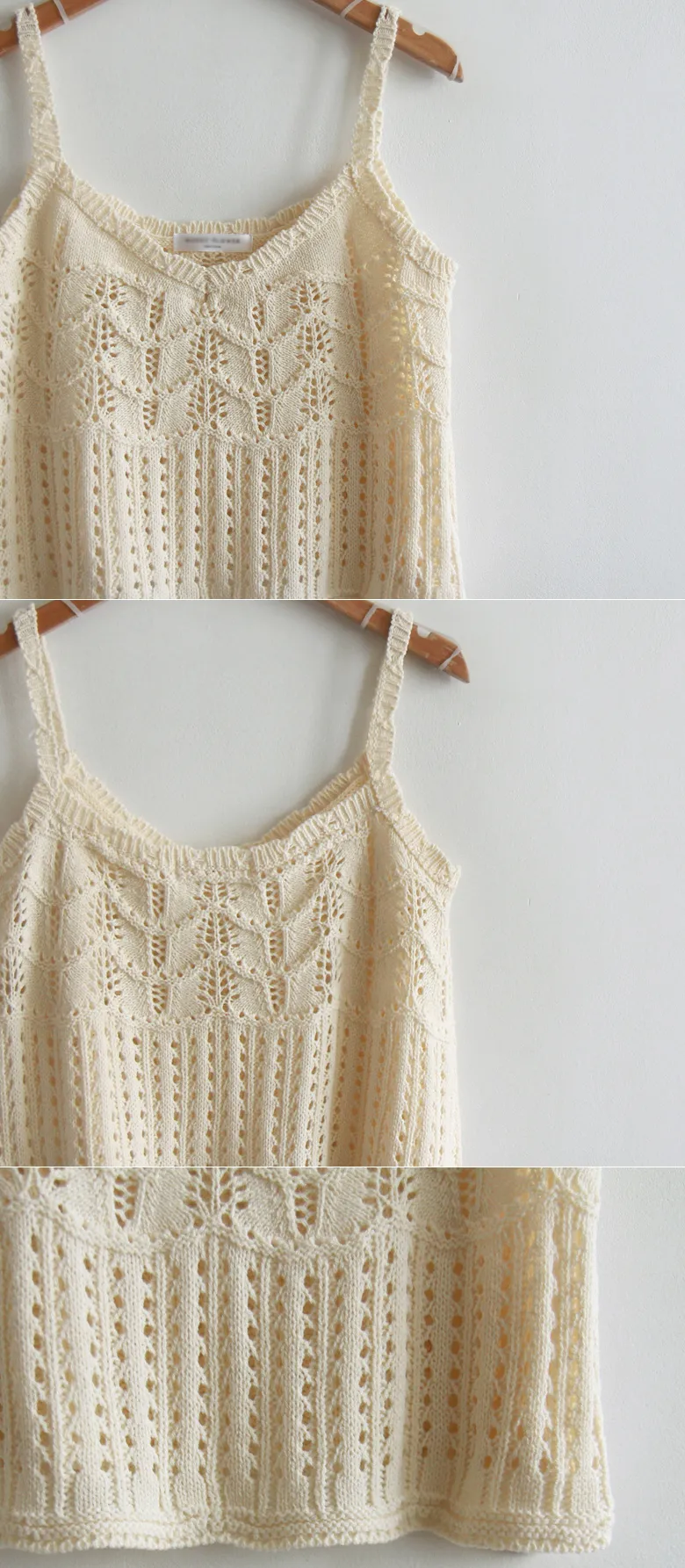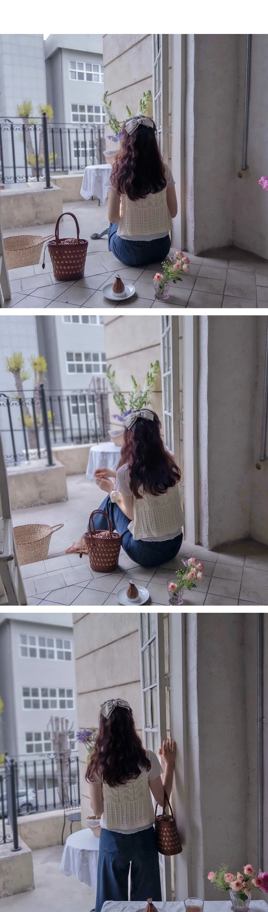 【帶有鏤空圖案,散發可愛氣息的針織背心】 【微微的波紋領口和修身剪裁,非常適合搭配各種造型】 【作為即將到來的季節的疊穿單品,也非常漂亮】 【與襯衫或T卹輕輕疊穿,營造出優雅的氛圍】 【推薦作為搭配性極佳的針織背心】