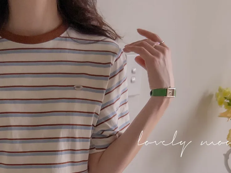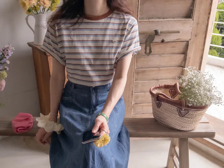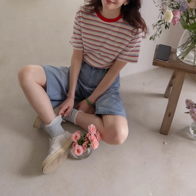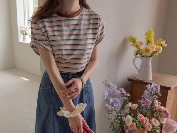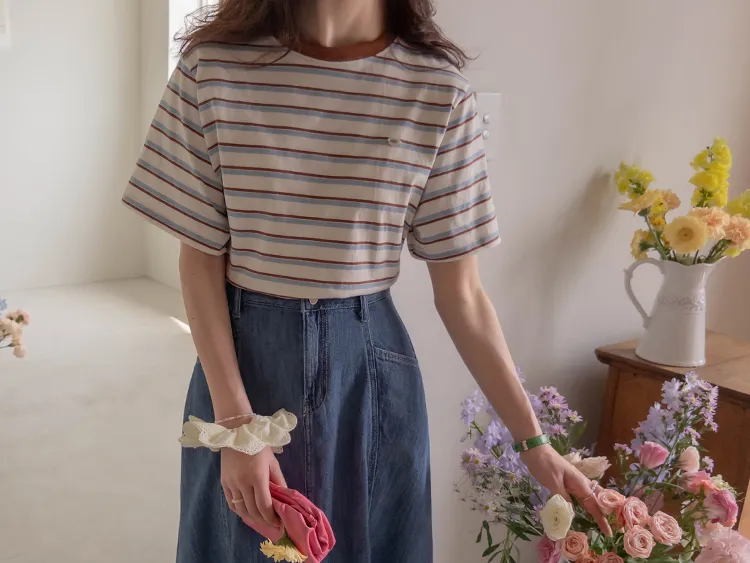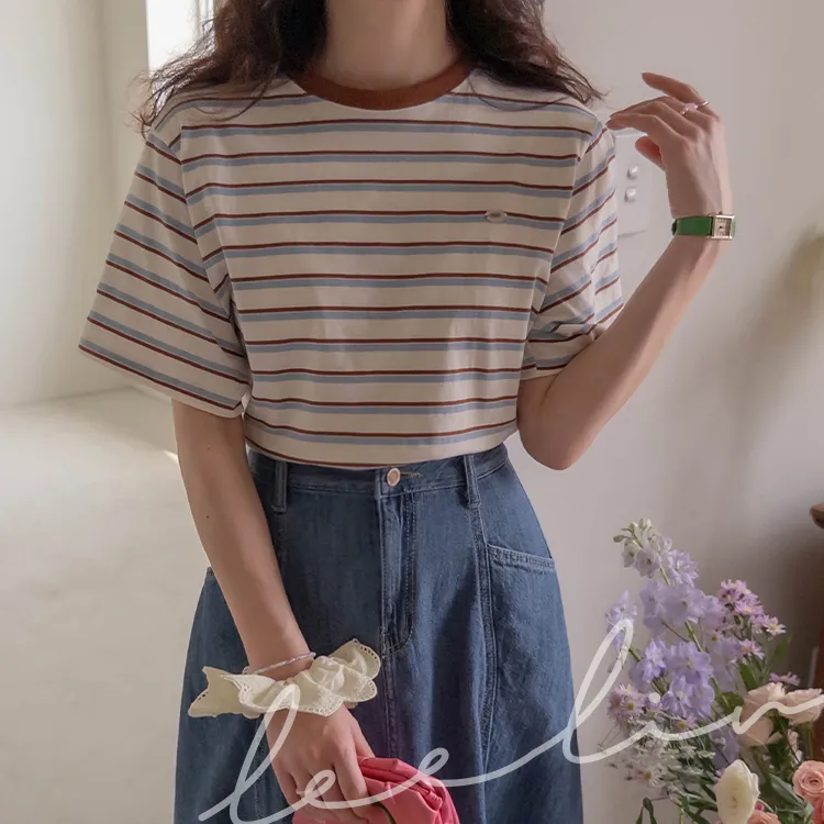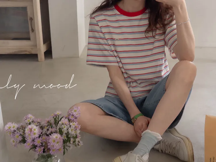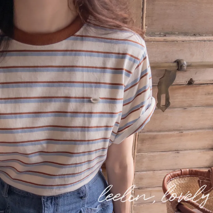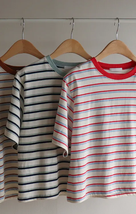 【彩色條紋很活潑♥】【一件T卹就能完成造型! 】【輕盈舒適!一直到夏天~】【迷你吊墜裝飾】