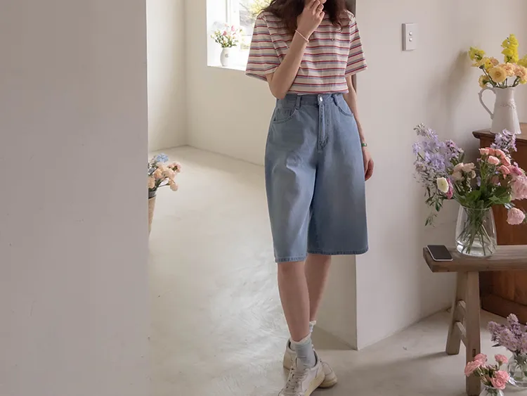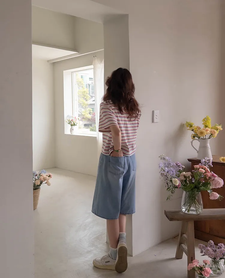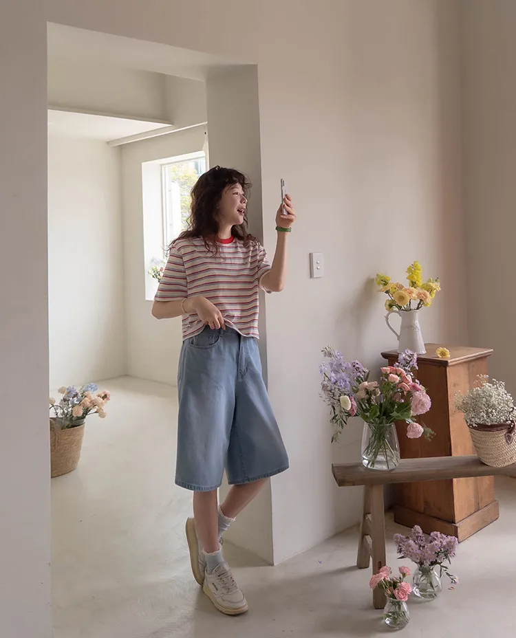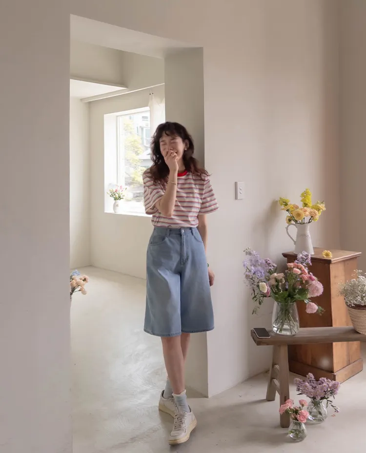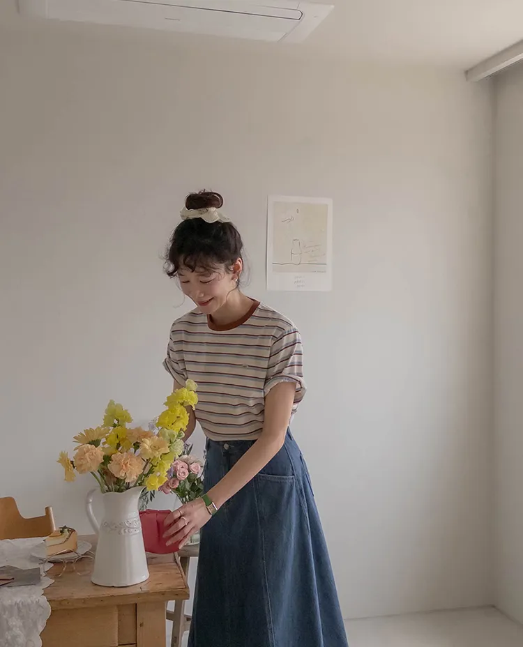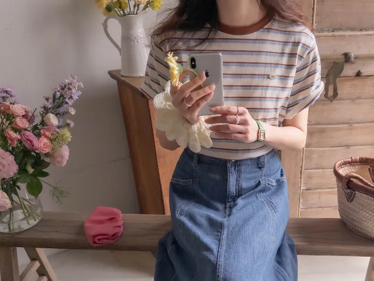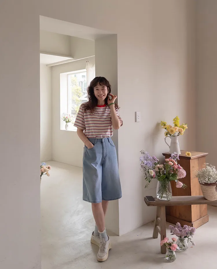 【彩色條紋很活潑♥】【一件T卹就能完成造型! 】【輕盈舒適!一直到夏天~】【迷你吊墜裝飾】