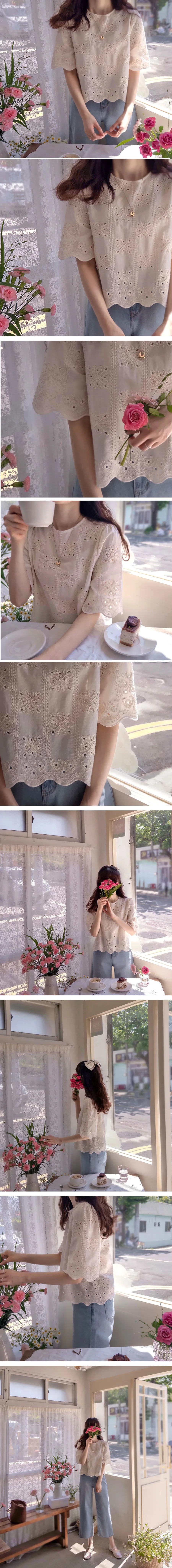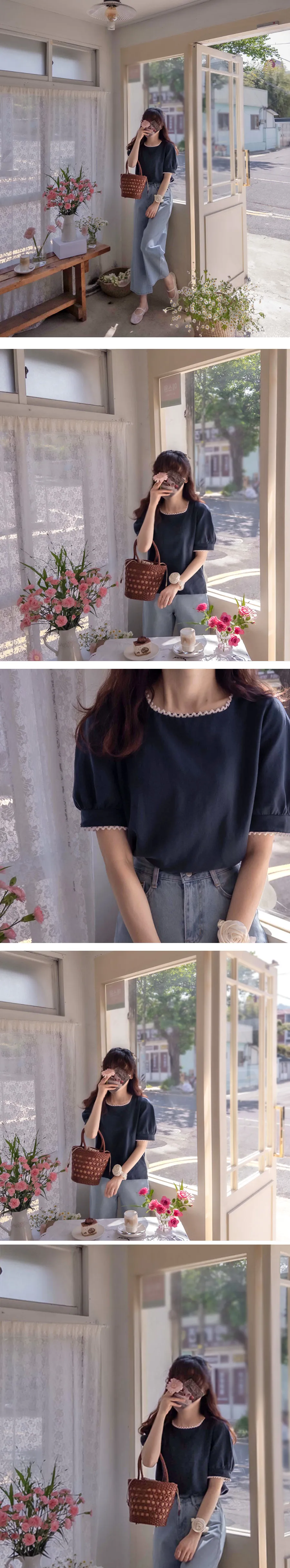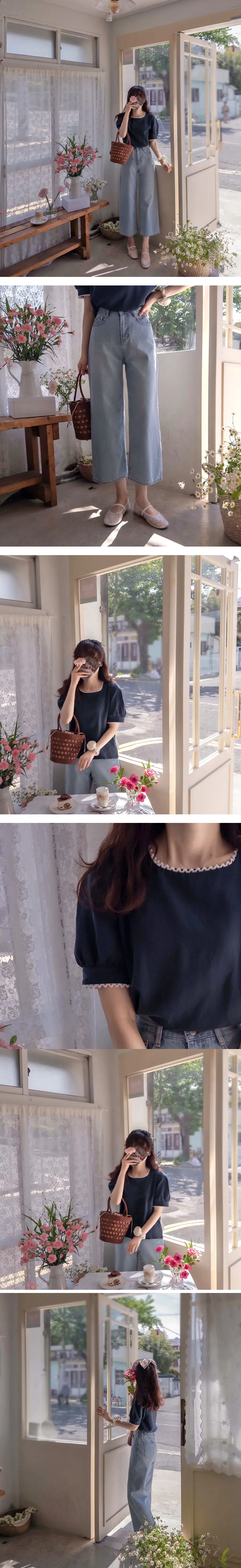 優雅迷你蕾絲領口袖末飾邊泡泡袖上衣