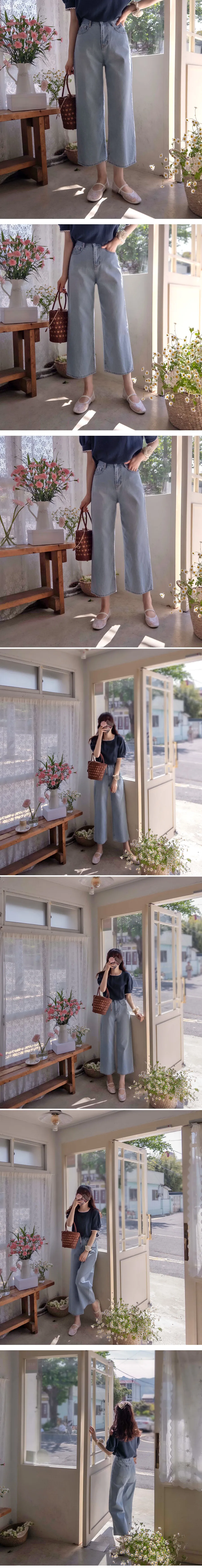 [腰部後部有彈性帶] [8分長度半寬鬆版型設計,柔軟有彈性,穿著舒適] [長度及腳踝以上,面料堅韌,可愛的8分褲] [從現在到夏天必備的長度,帶來輕盈清爽的穿著體驗] [營造復古感]