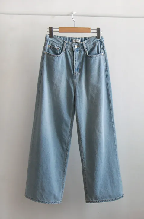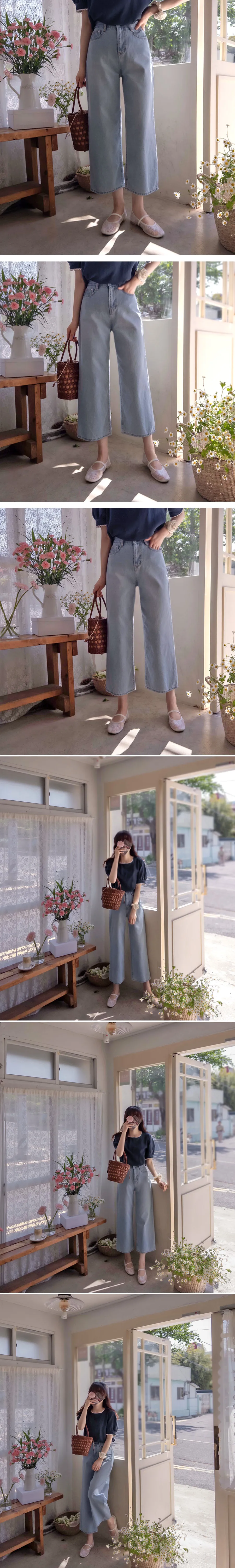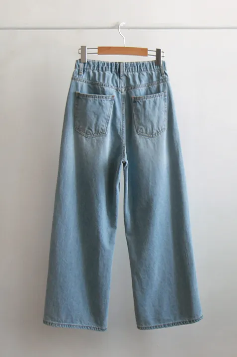 可愛半寬版型八分長舒適牛仔褲 淺藍S