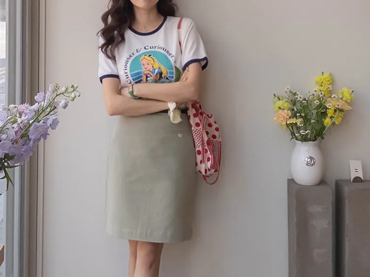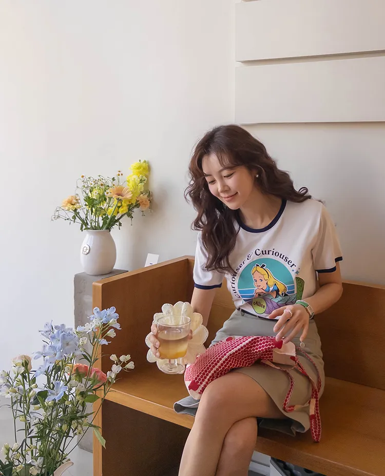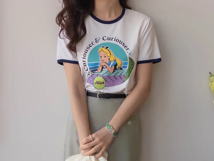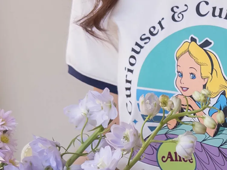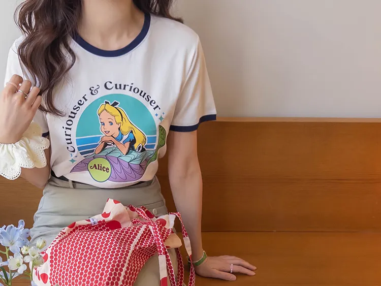[可愛上衣,你一定要擁有它♡] [可愛的愛麗絲印花] [柔軟舒適的質感] [只需一件T卹即可完成時尚造型〜]