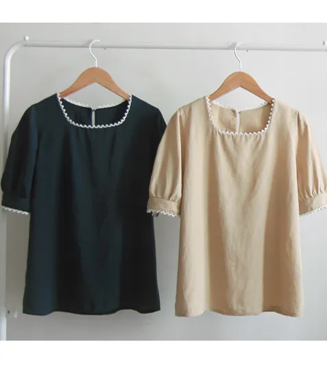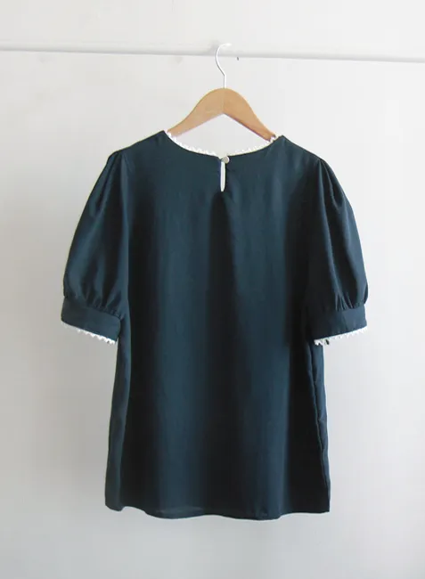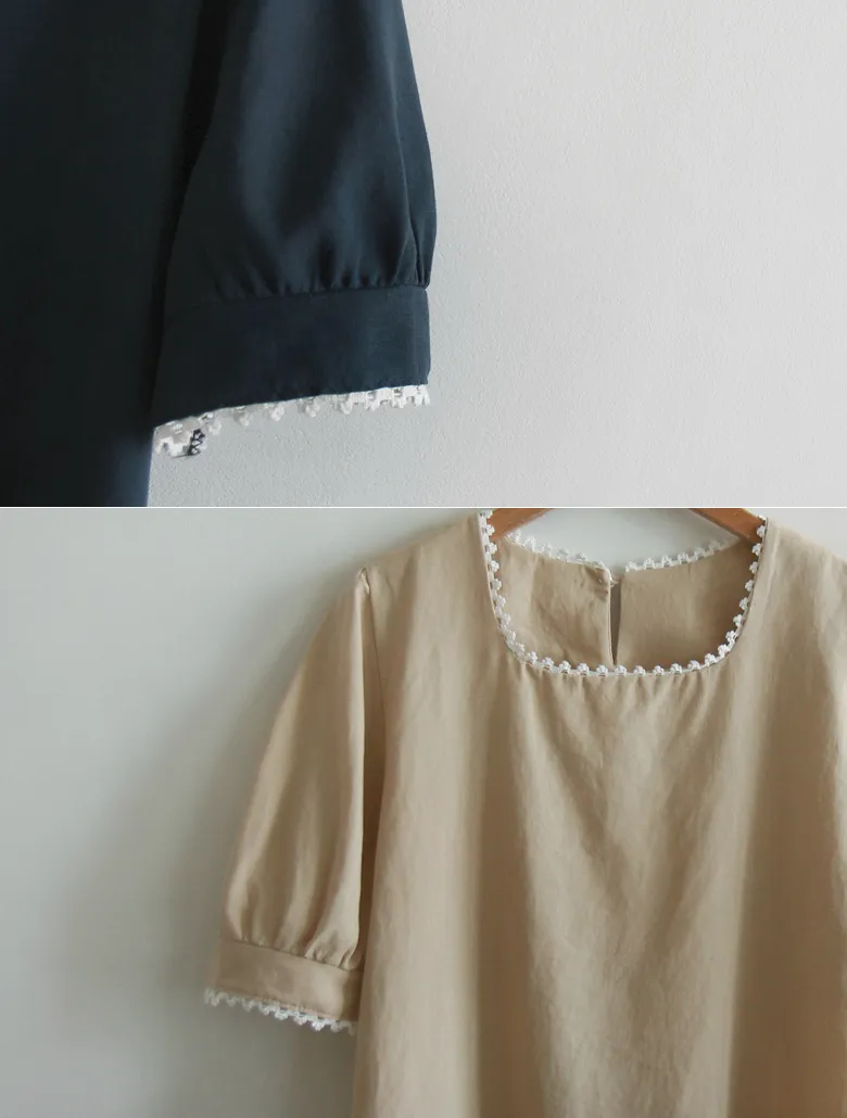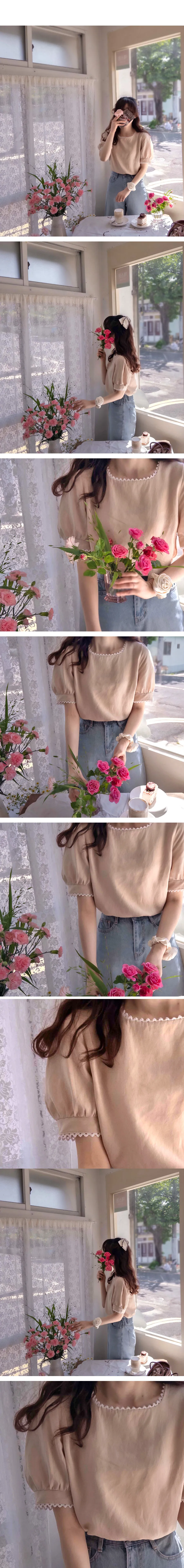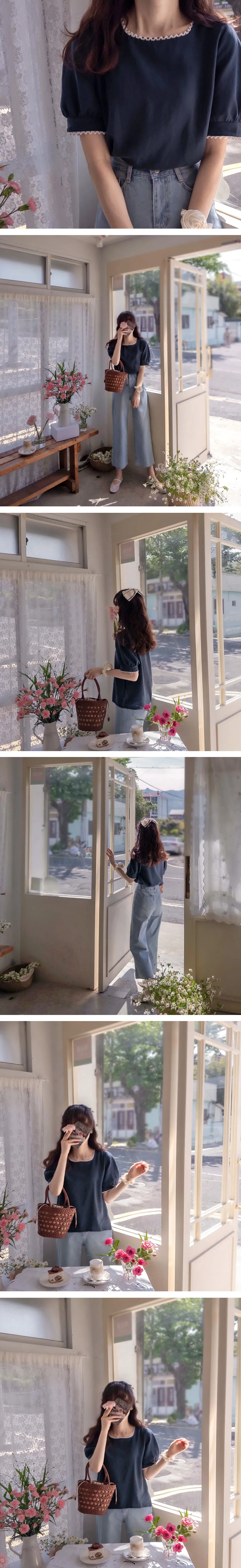 【適合從現在到夏季穿著】 【充滿精緻感的當季色彩】 【可愛的迷你蕾絲裝飾領口和袖口成為亮點】 【精緻的泡泡袖】 【優雅又活潑的搭配】