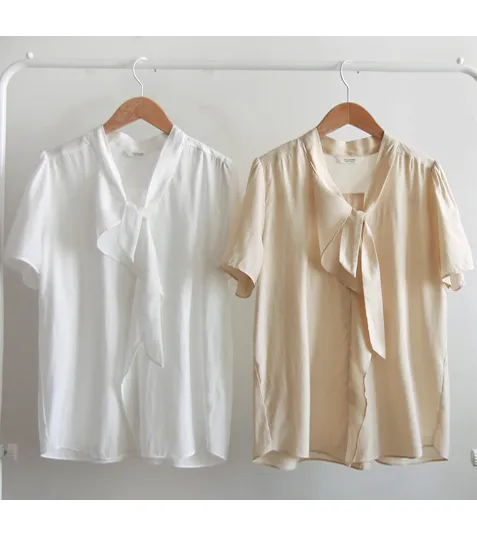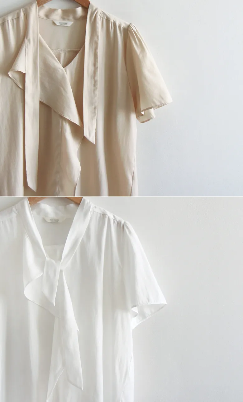 【輕盈飄逸的上衣】【彰顯高級品牌感】【精緻的線條與細膩的剪裁】【像蝴蝶結一樣綁結也很漂亮的設計】【色彩上衣,非常適合春夏季節】