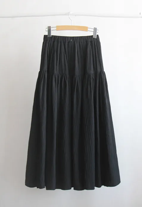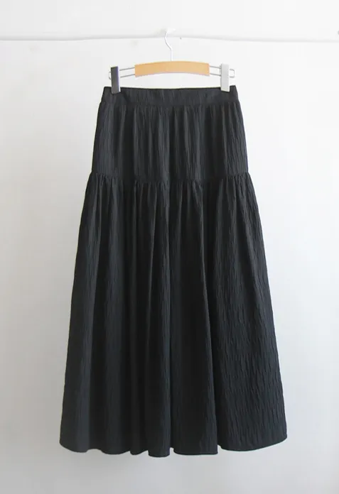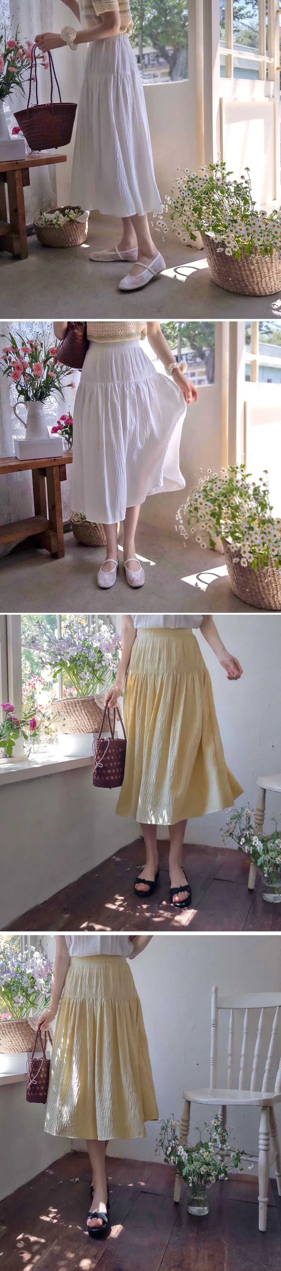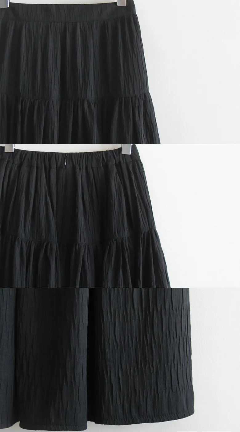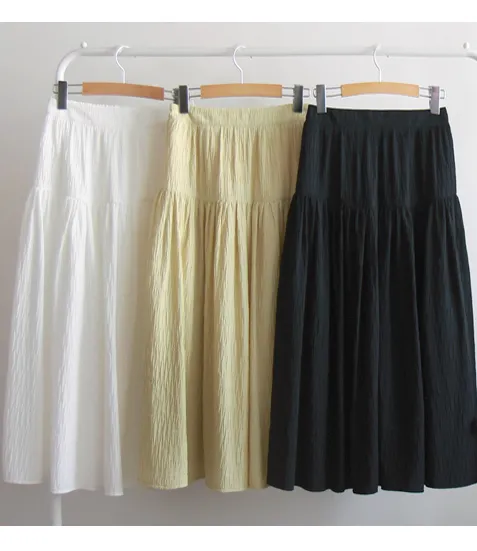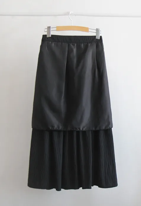 [聚酯纖維內襯] [腰後部有束帶處理] [後部拉鍊結構] [90%天絲面料,觸感清涼,不易起皺] [腰部以下採用類似層次的褶皺設計,更顯優雅] [適合從現在到夏季的時尚搭配]