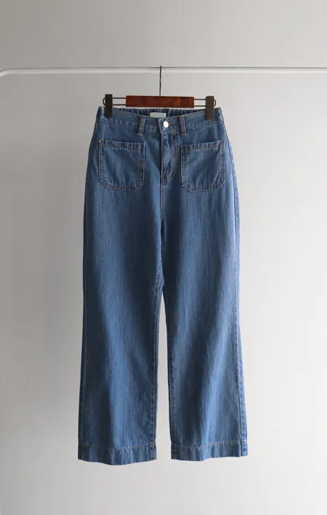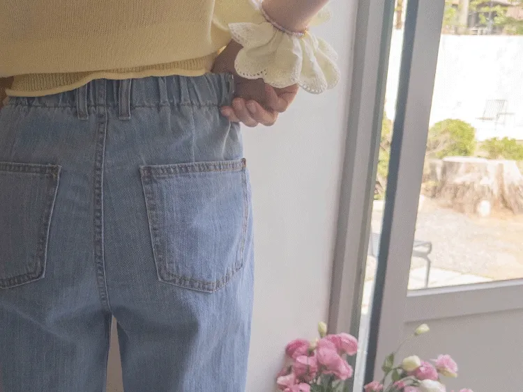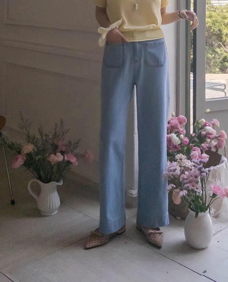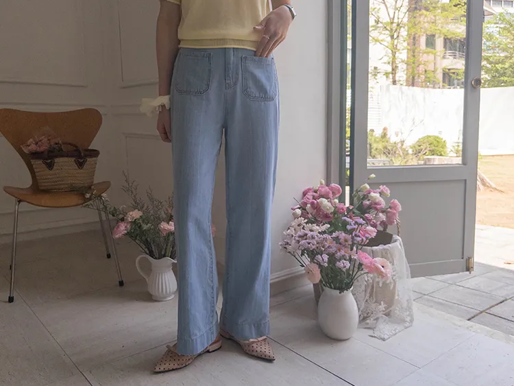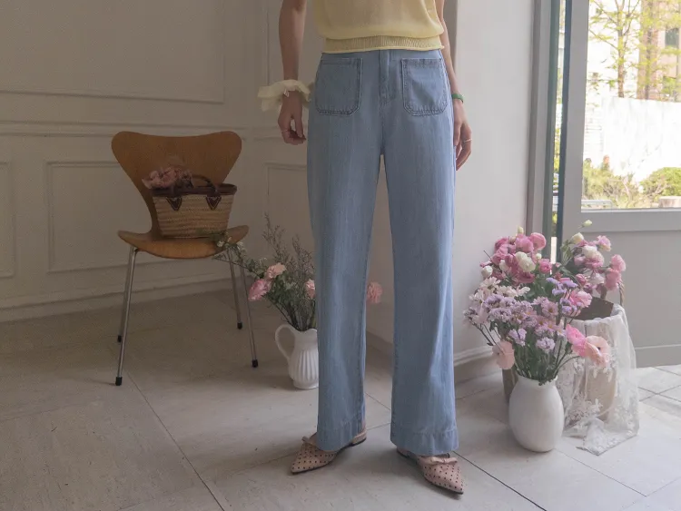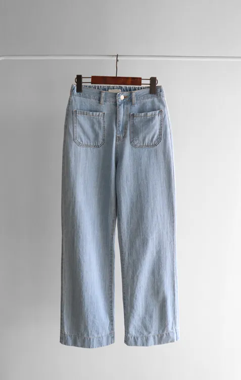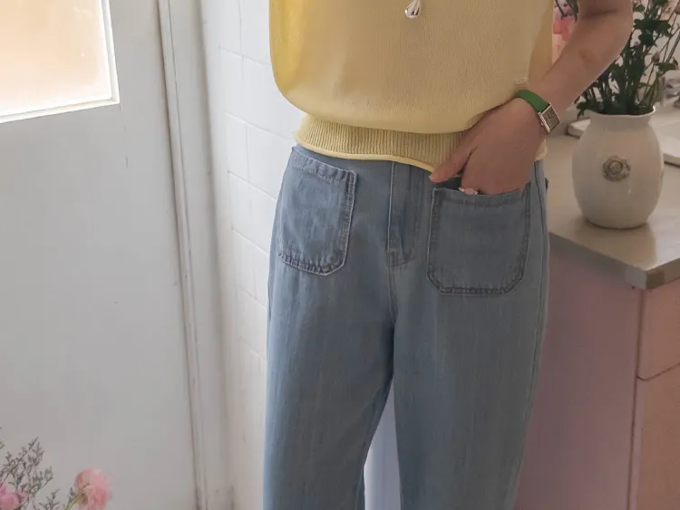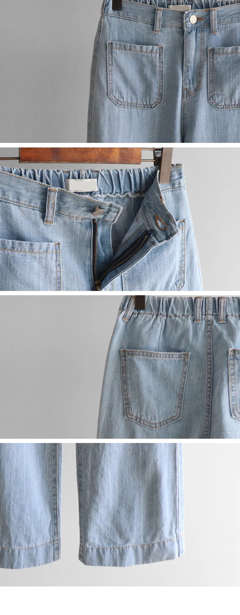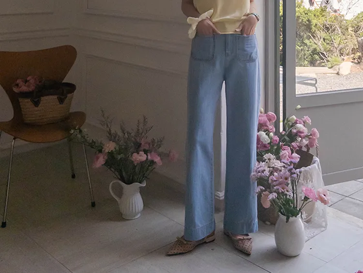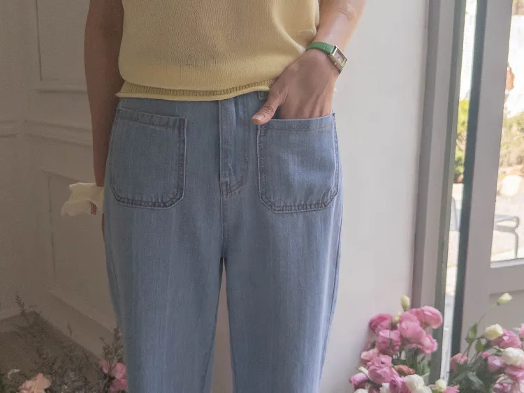 夏日舒適魅力前口袋設計寬版牛仔褲