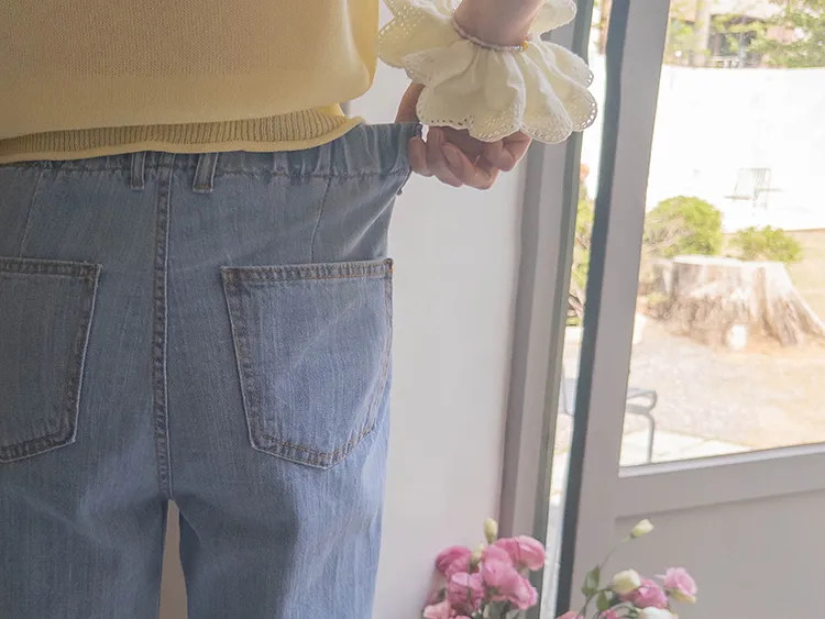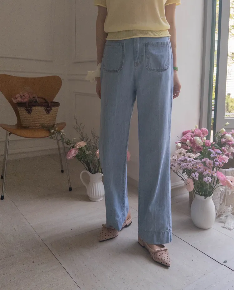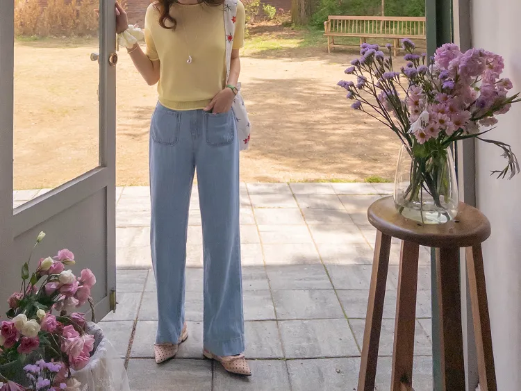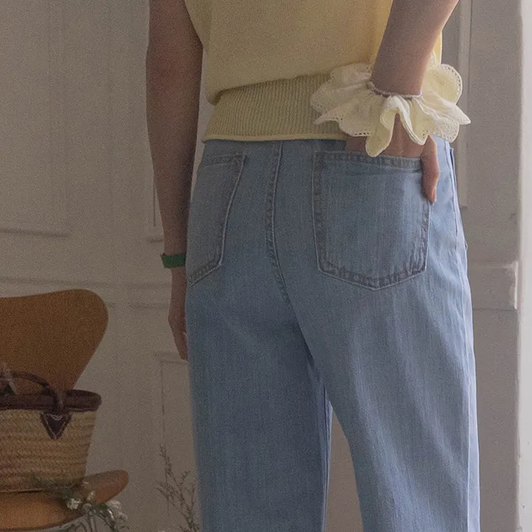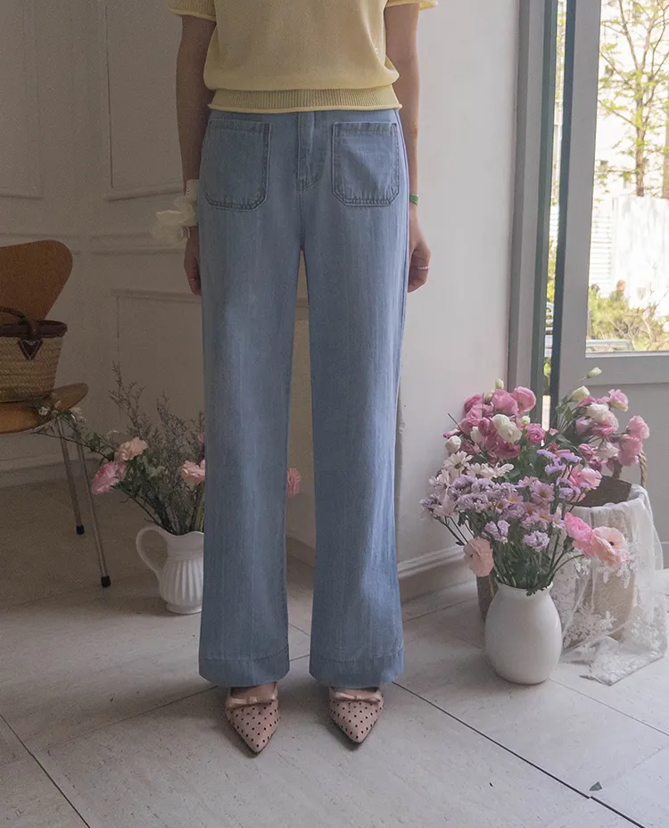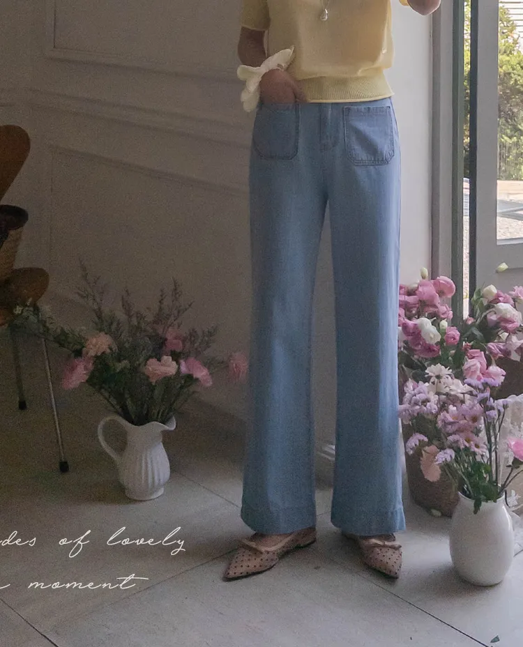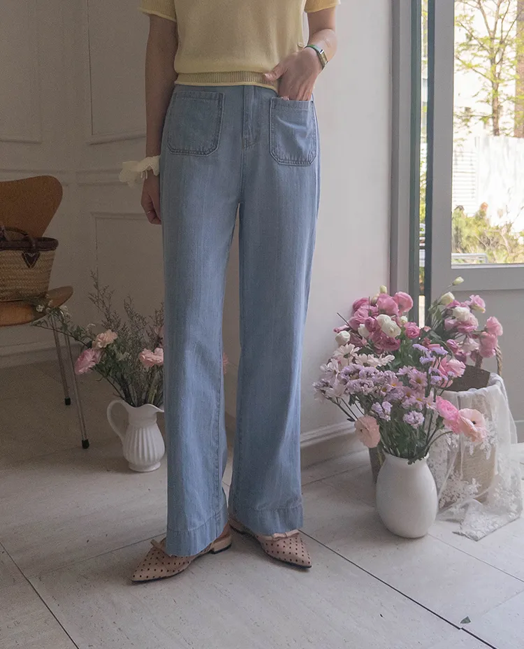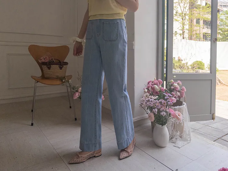 夏日舒適魅力前口袋設計寬版牛仔褲