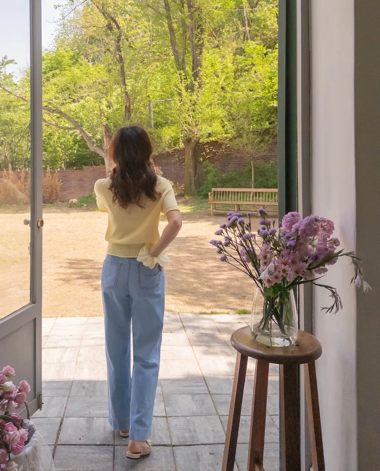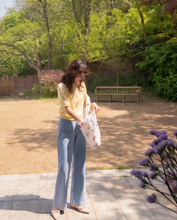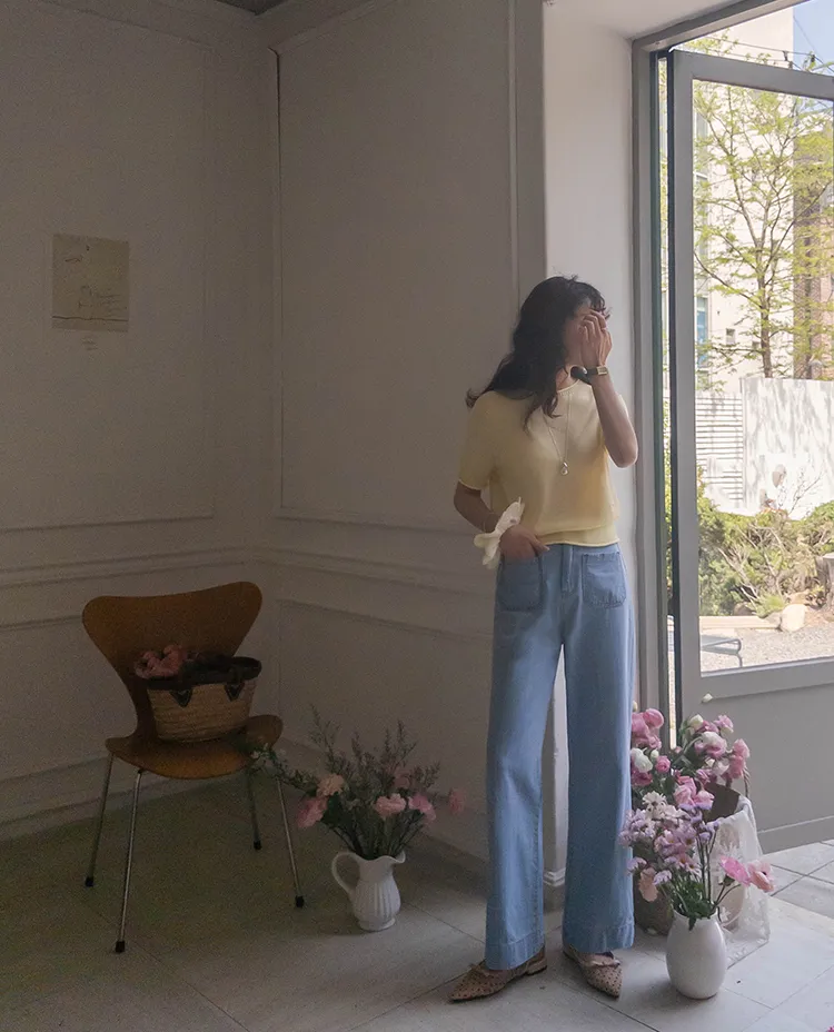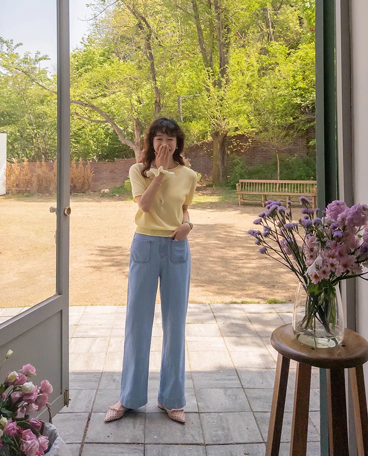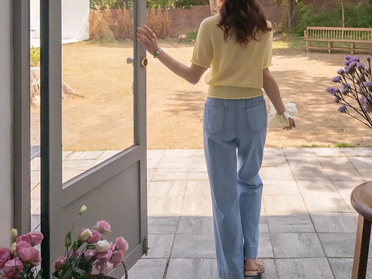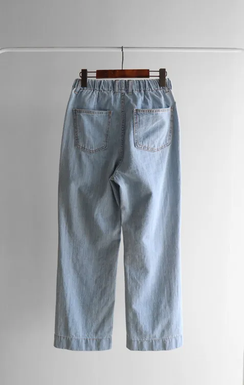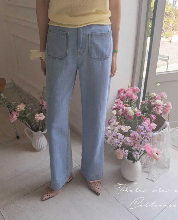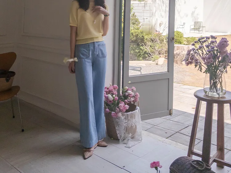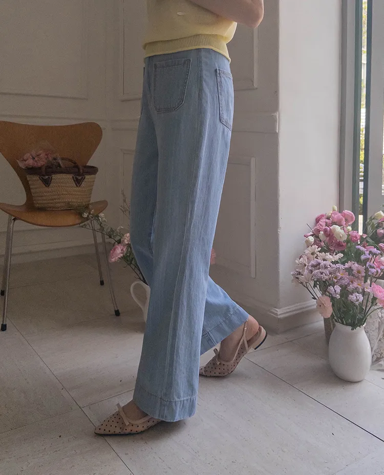 夏日舒適魅力前口袋設計寬版牛仔褲