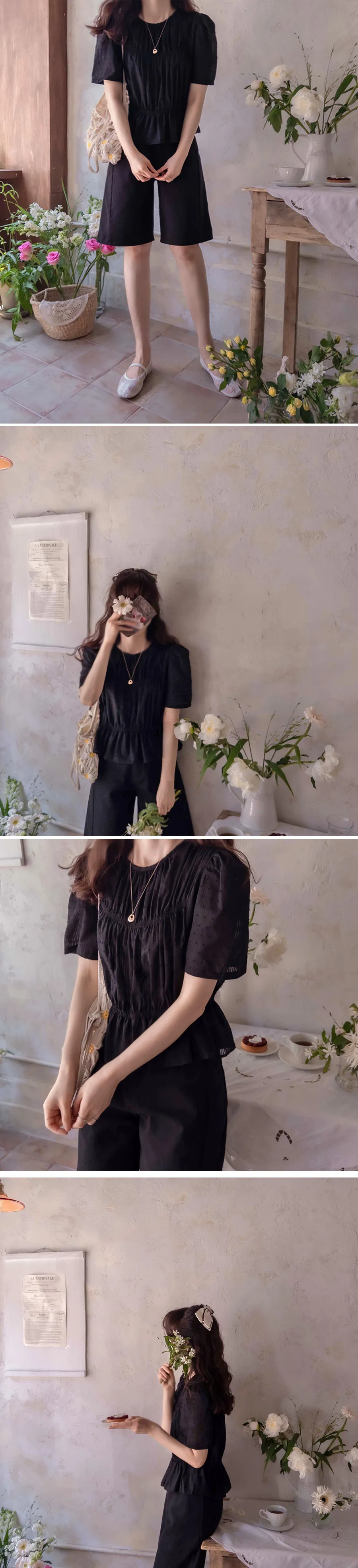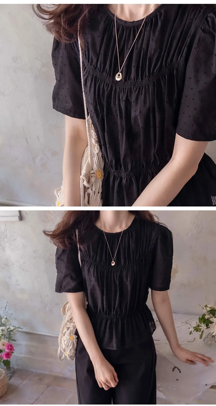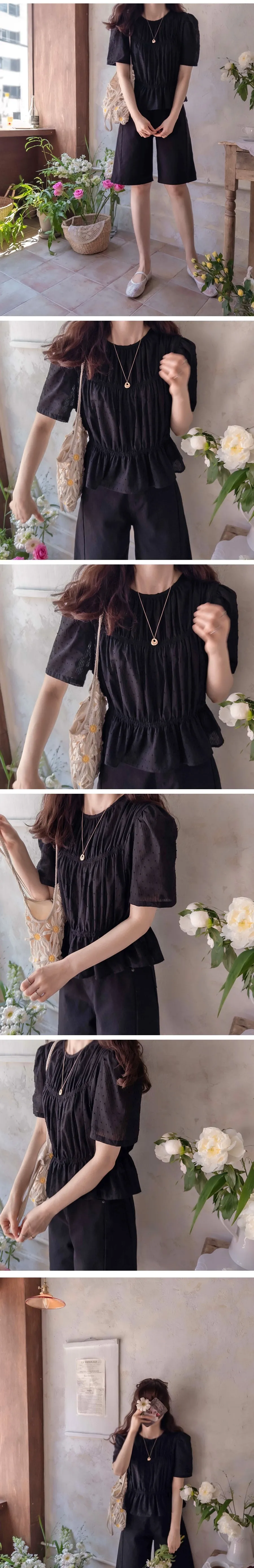 優雅可愛氛圍立體點點線條皺摺上衣