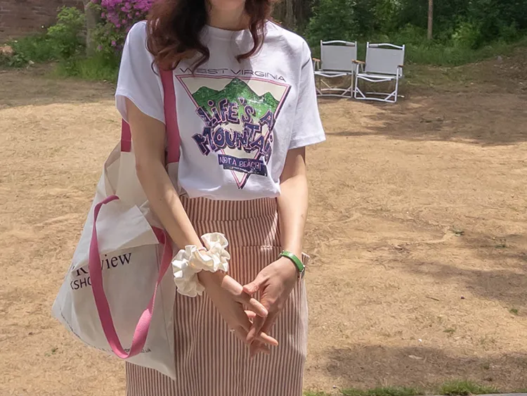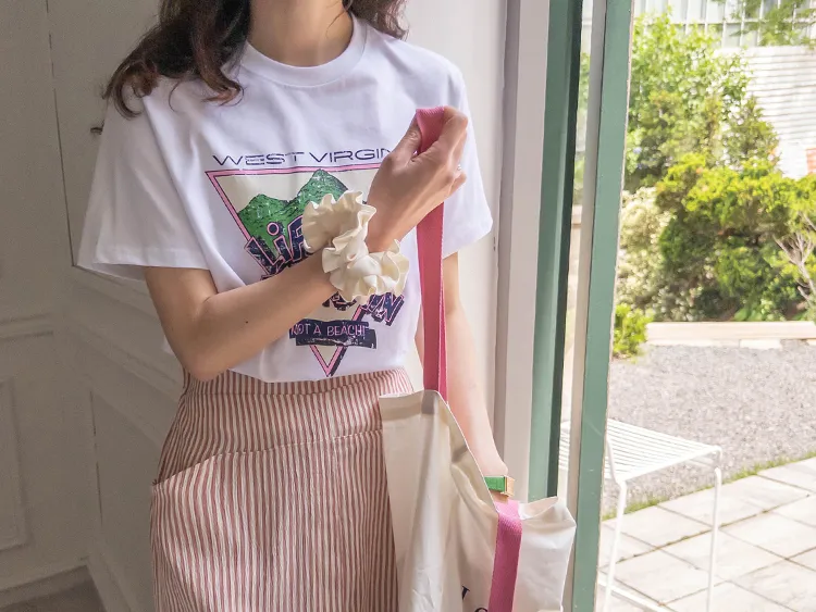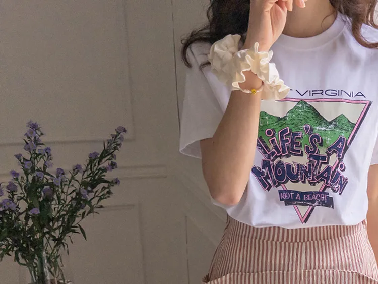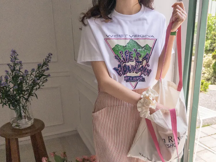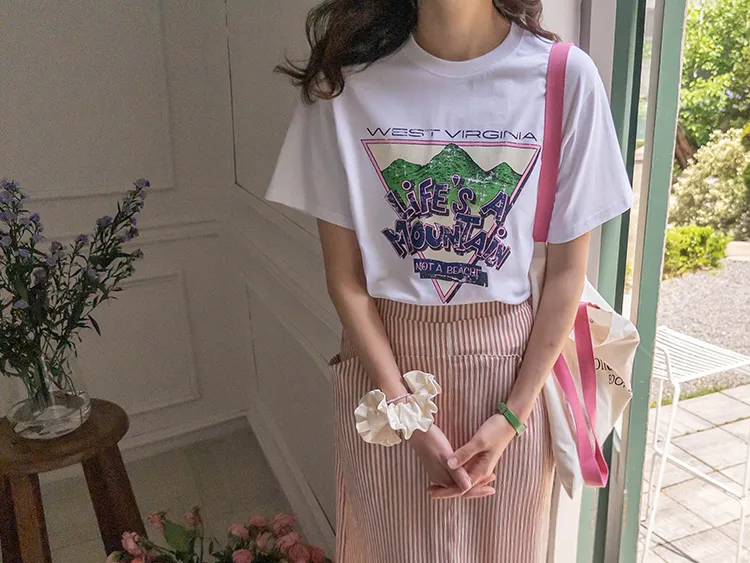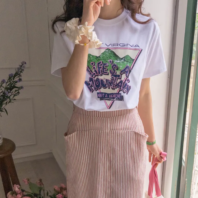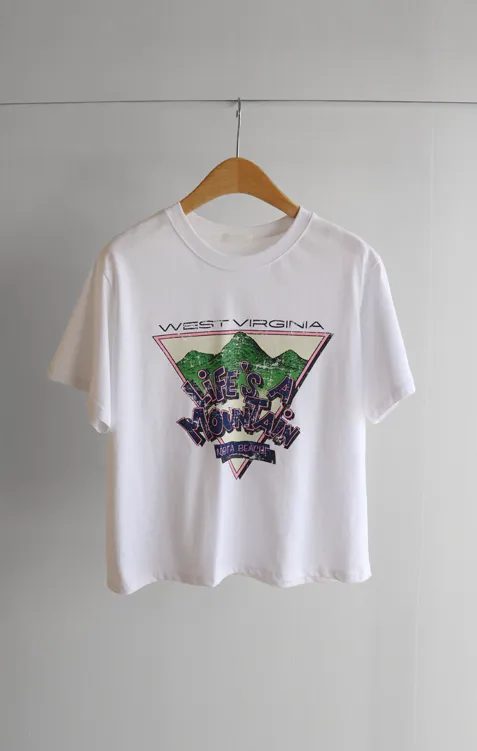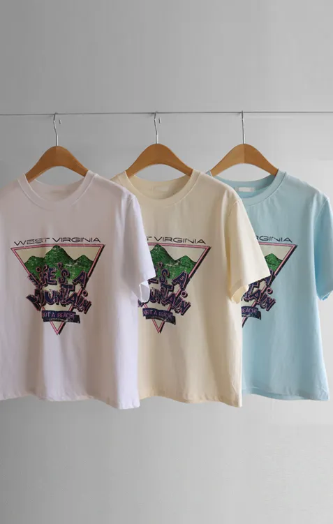 【獨特的三角染色短袖T卹】 【鮮豔的色彩印花】 【作為亮點T卹♥】 【適度寬鬆的廓形,時尚單品! 】