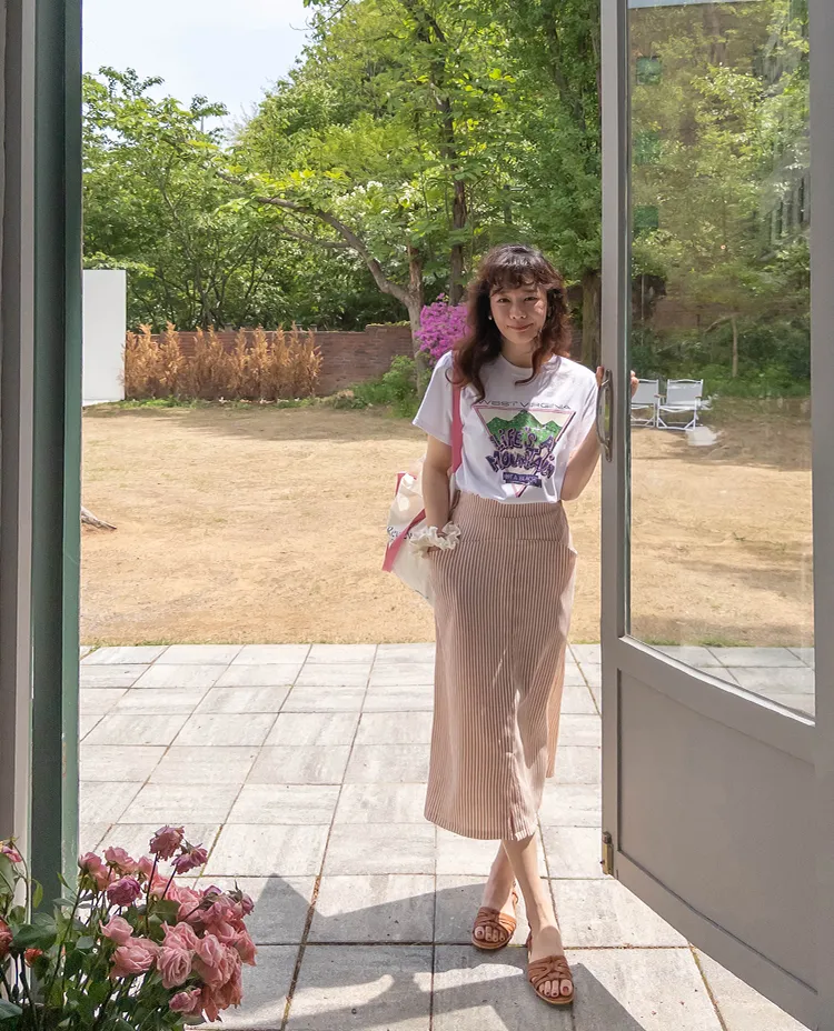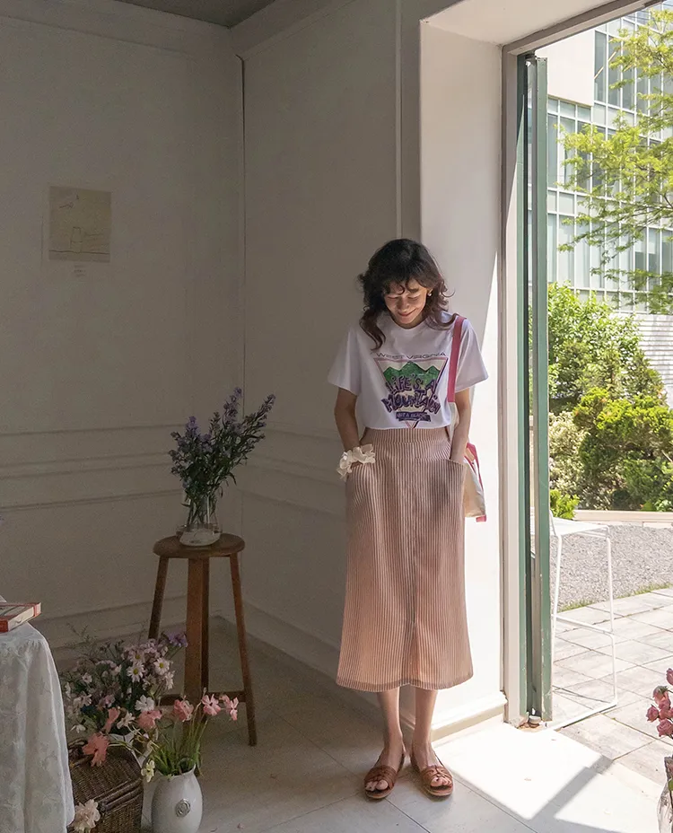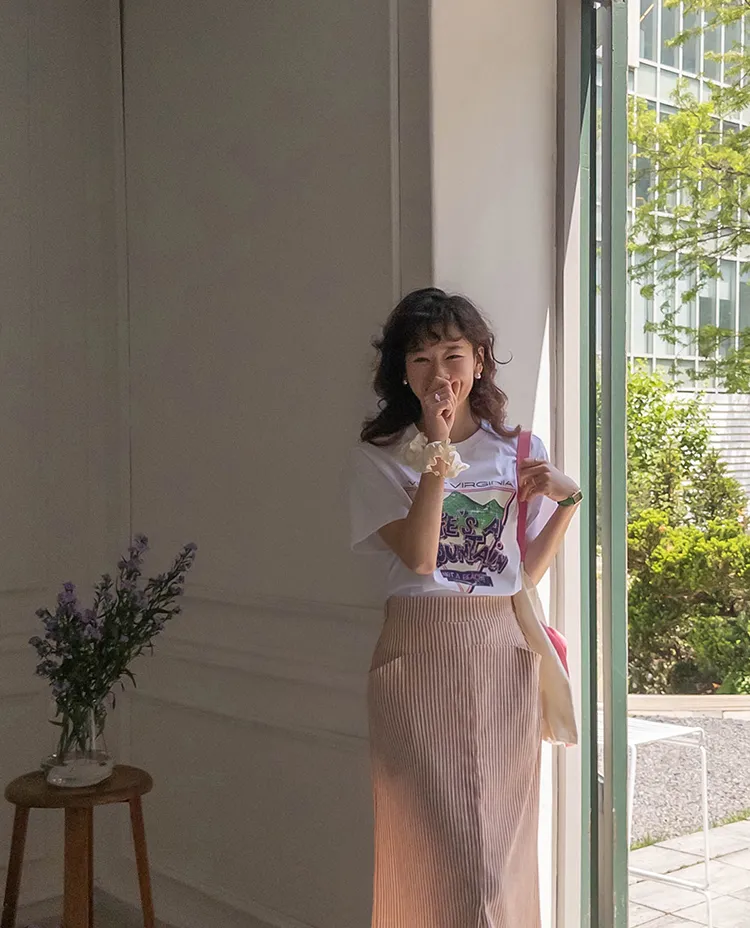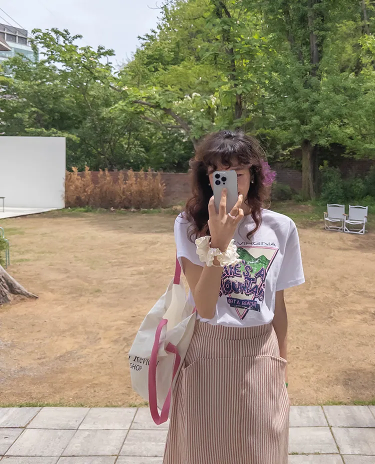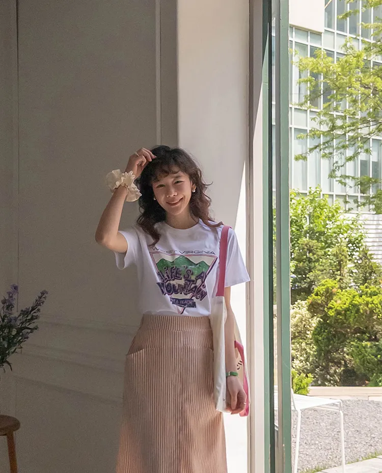 【獨特的三角染色短袖T卹】 【鮮豔的色彩印花】 【作為亮點T卹♥】 【適度寬鬆的廓形,時尚單品! 】