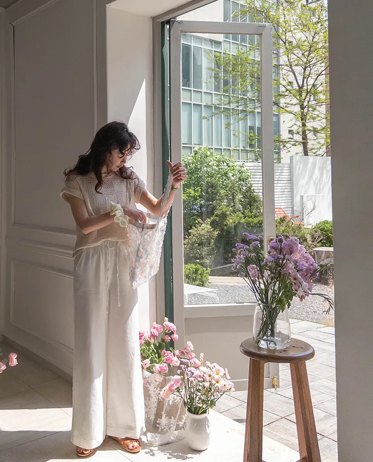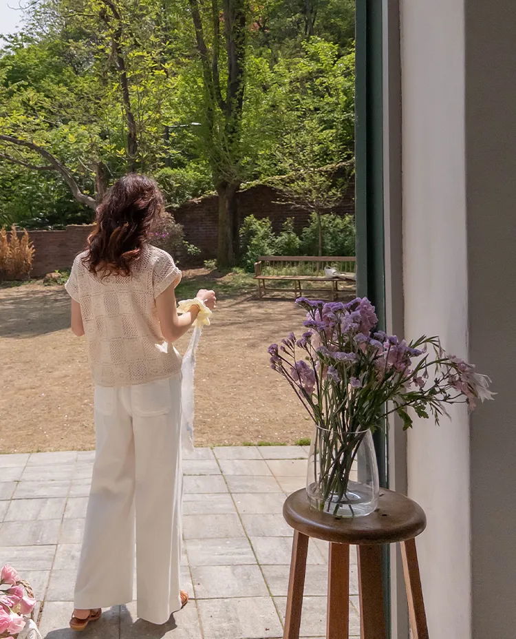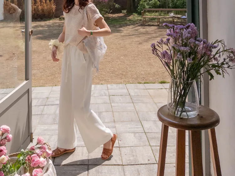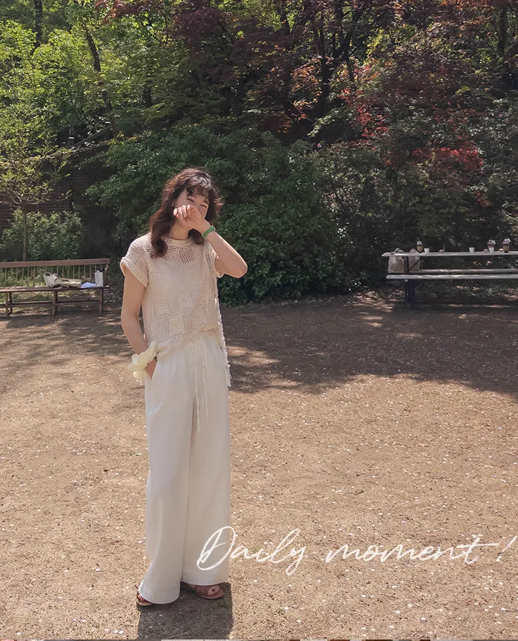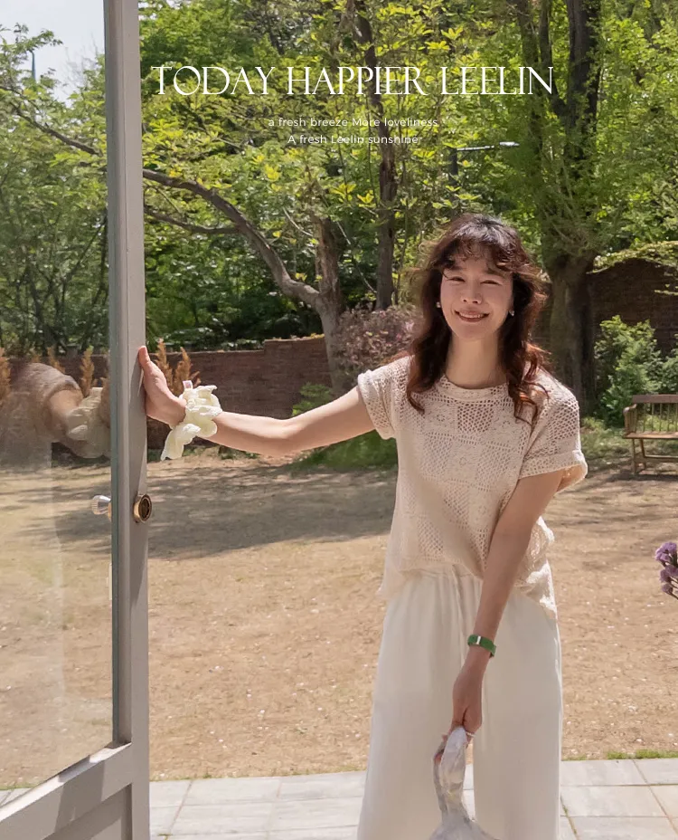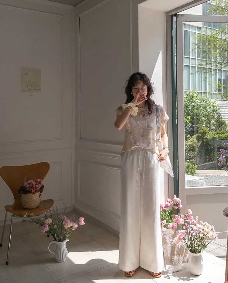 漂亮鏤空花朵夏日針織短袖上衣