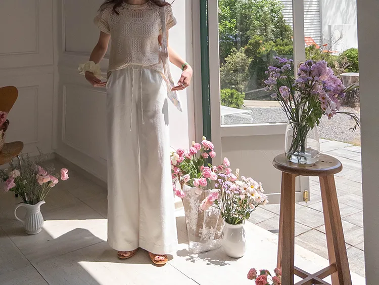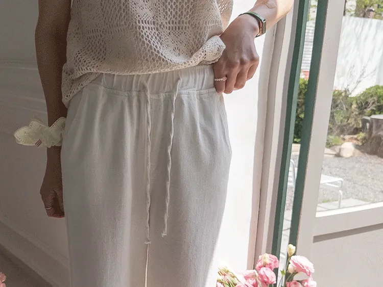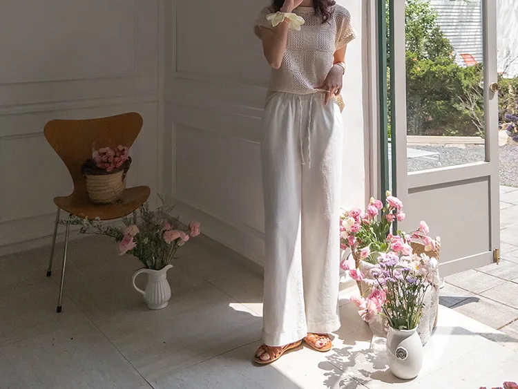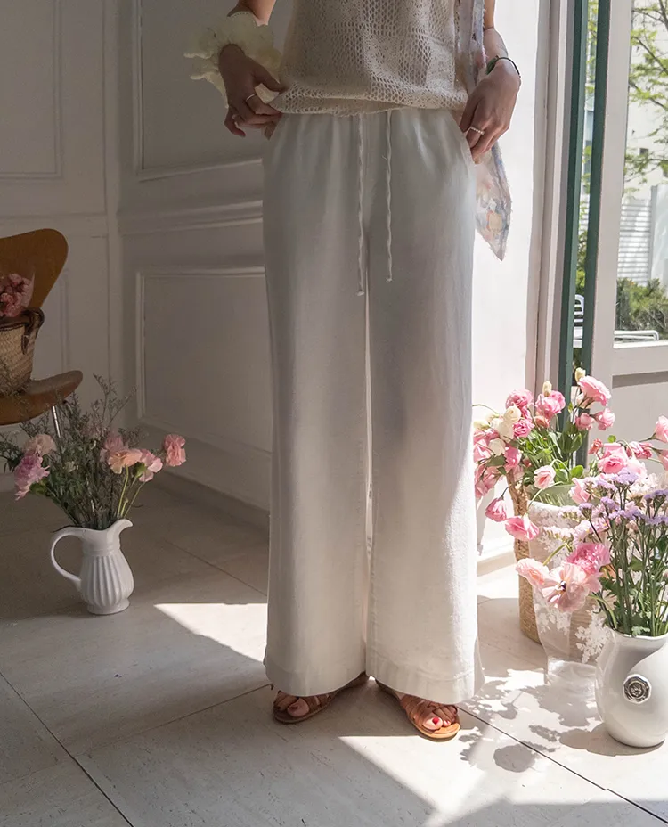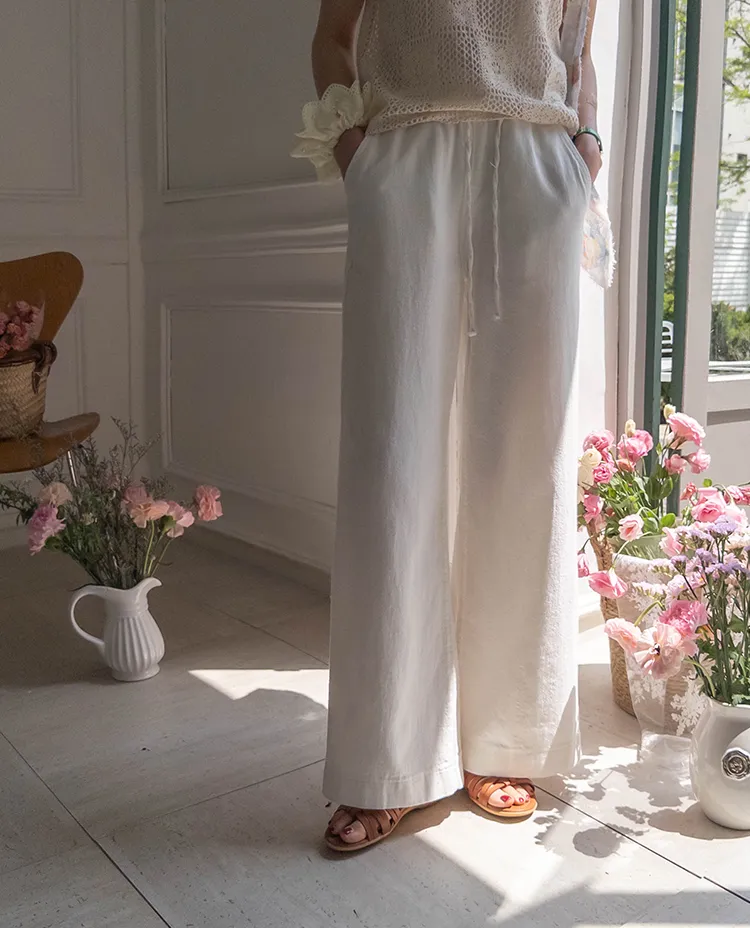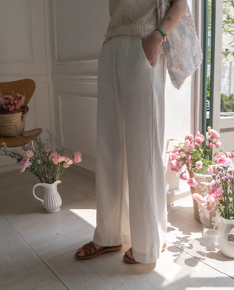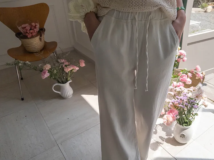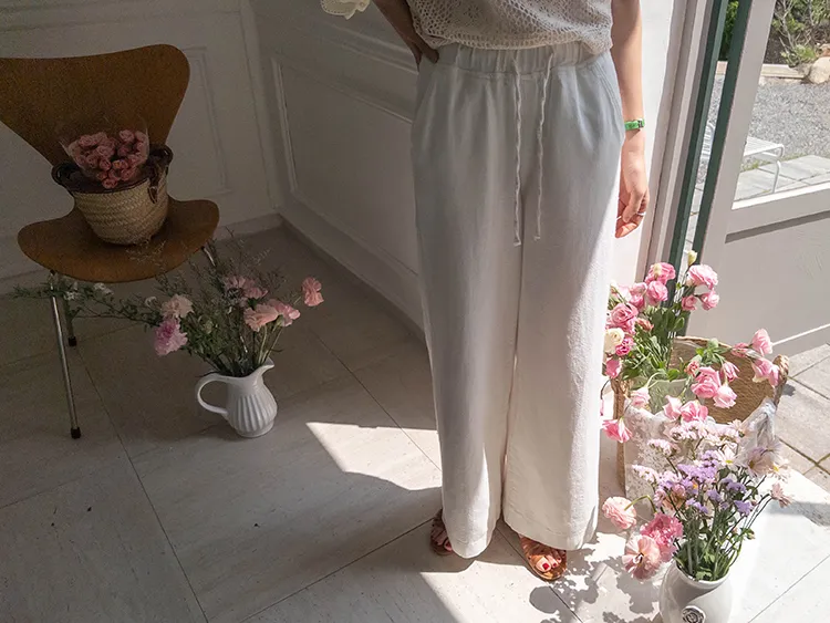 舒適寬版腰綁帶日常休閒褲