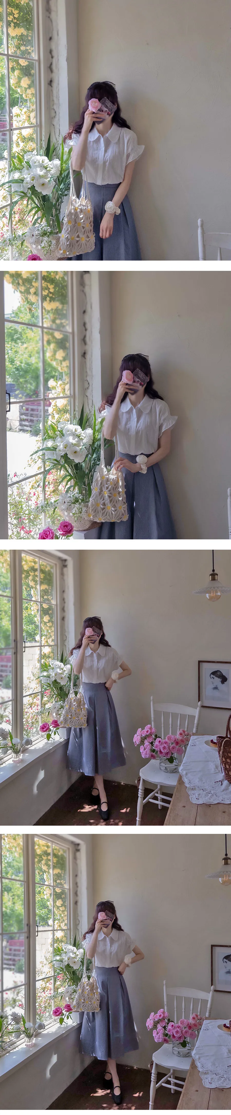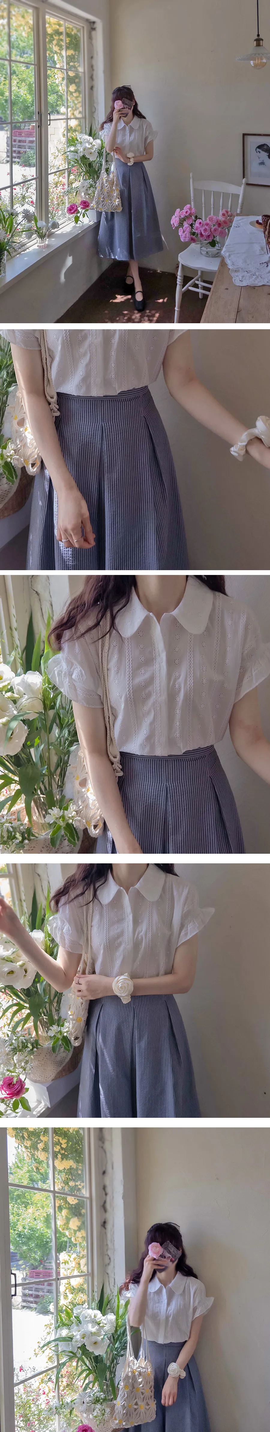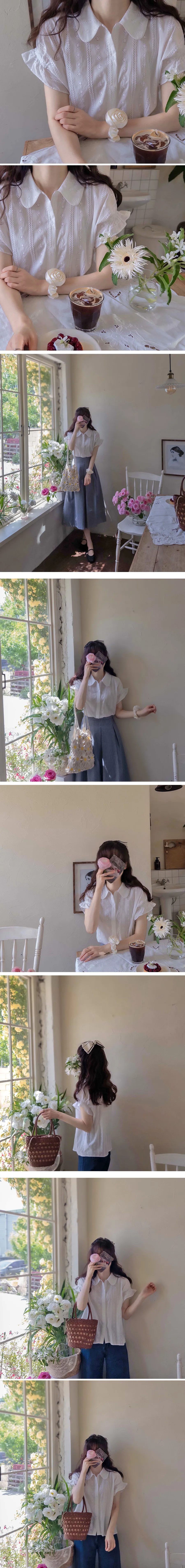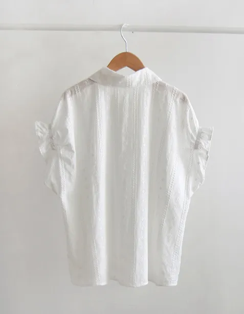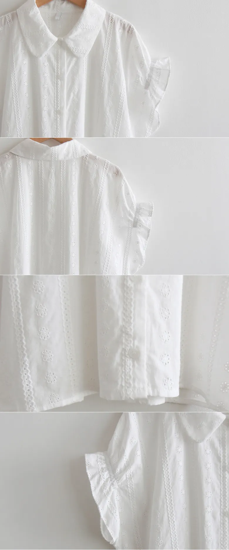 可愛鏤空花朵刺繡優雅袖口設計排扣上衣
