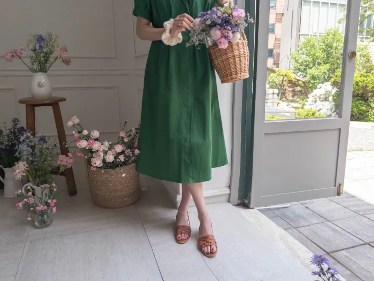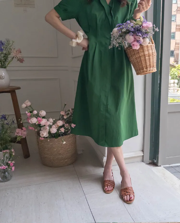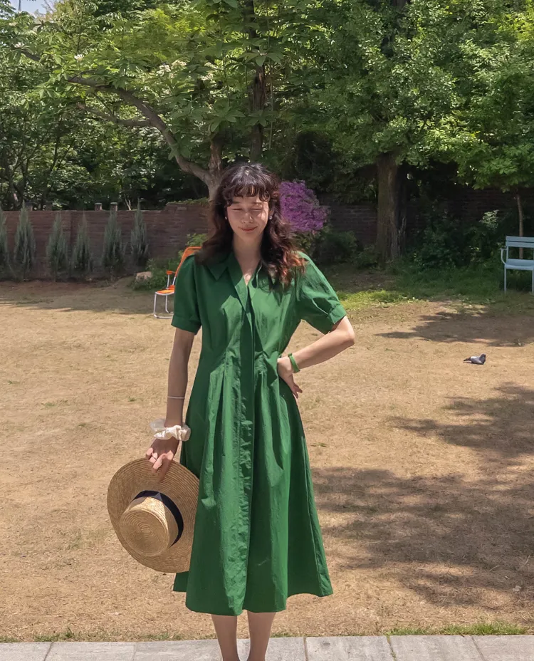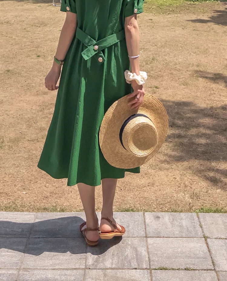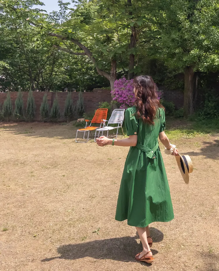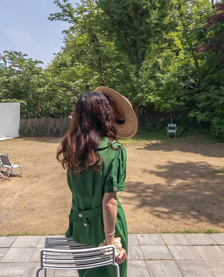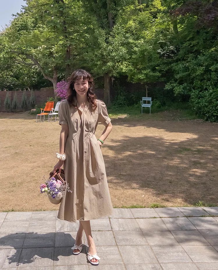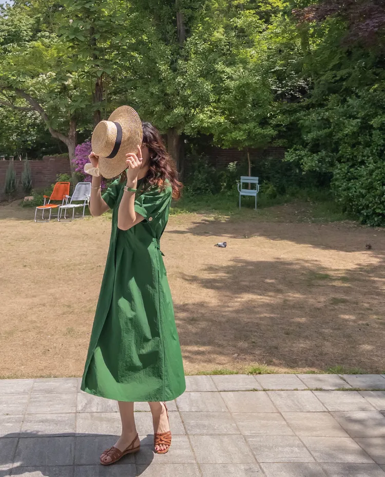 【清涼夏日洋裝! 】 【不用擔心起皺! 】 【胸圍褶邊設計】 【修身廓形,腰部