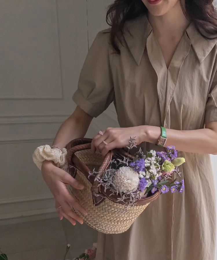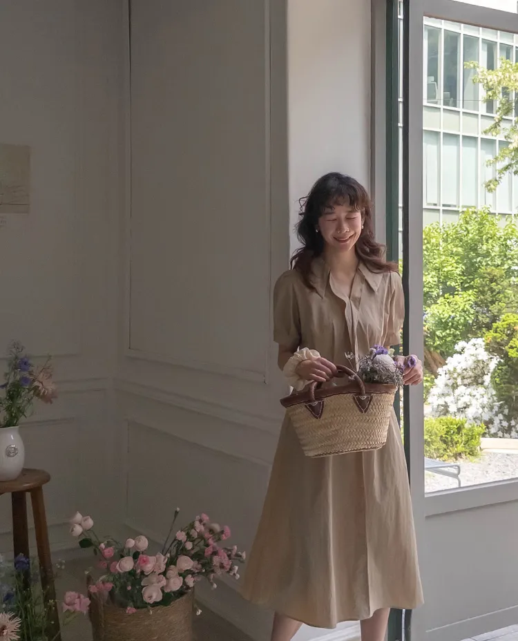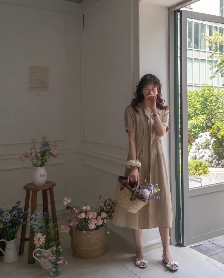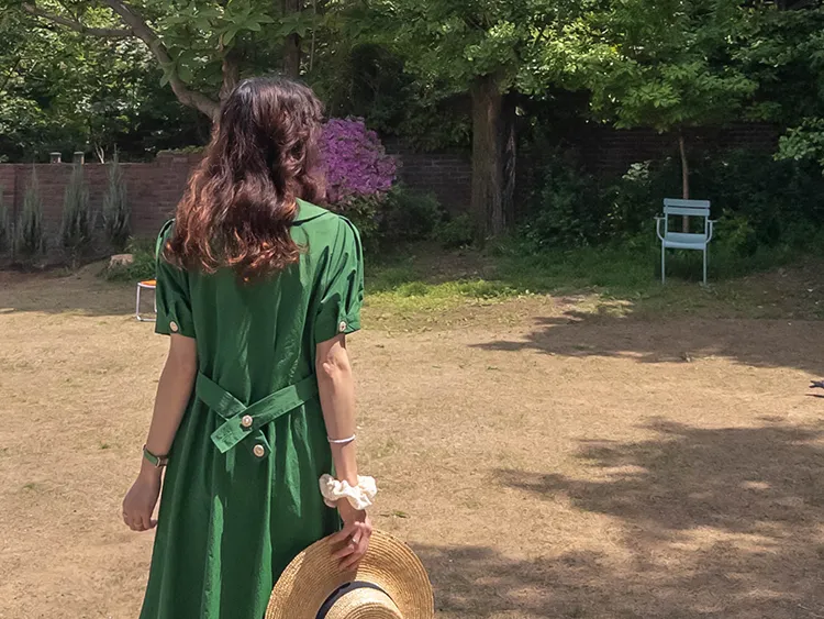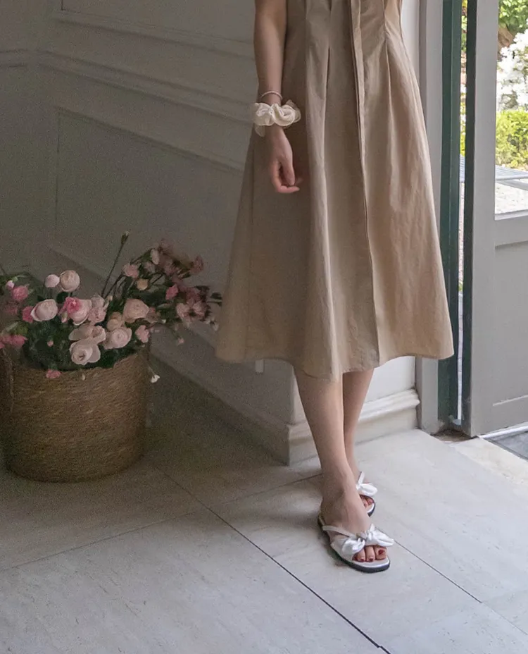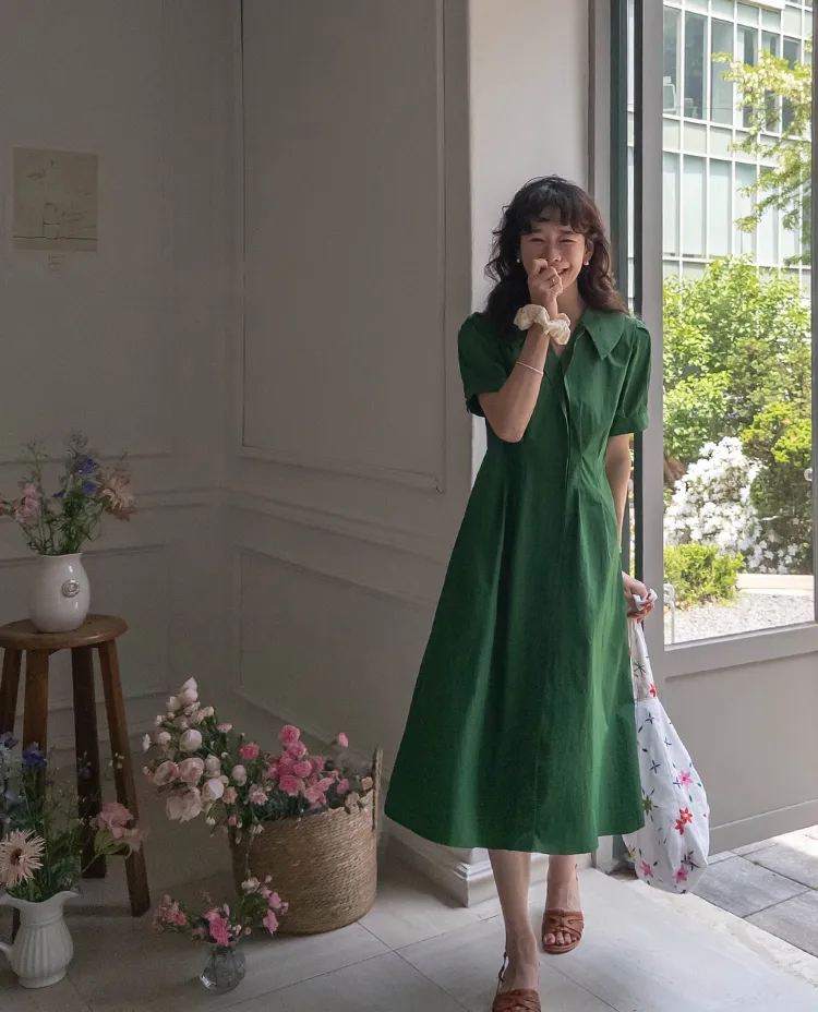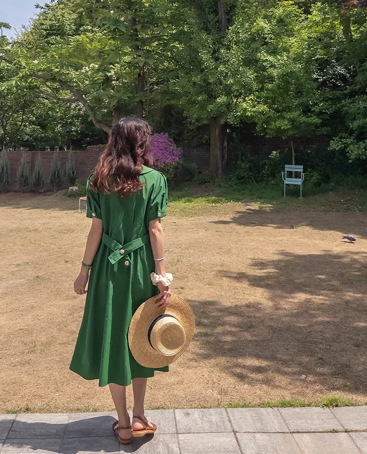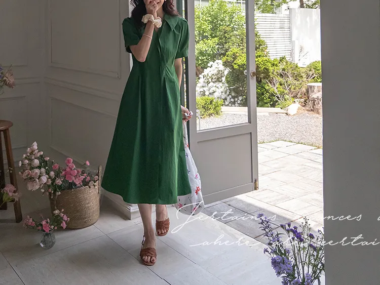 【清涼夏日洋裝! 】 【不用擔心起皺! 】 【胸圍褶邊設計】 【修身廓形,腰部