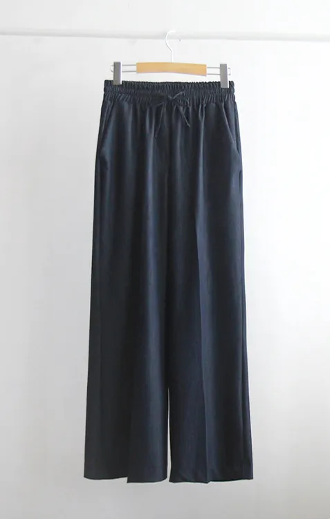 [舒適的腰帶處理] [62% 天絲、20% 人造絲、11% 絲、7% 氨綸的涼爽春夏褲] [面料輕款的半寬褲] [舒適的褲,不用擔心起皺] [柔軟有彈性的夏季褲] [推薦舒適有彈性的夏季褲]