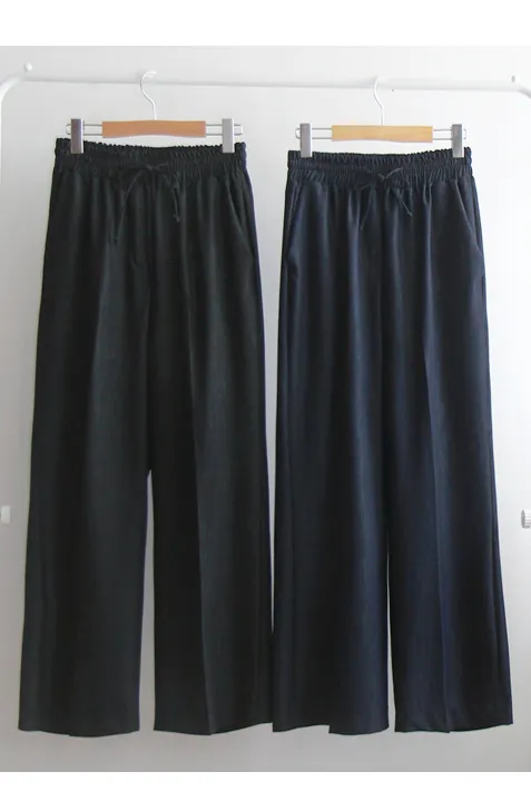柔軟舒適半寬修身腰部彈性綁帶休閒褲