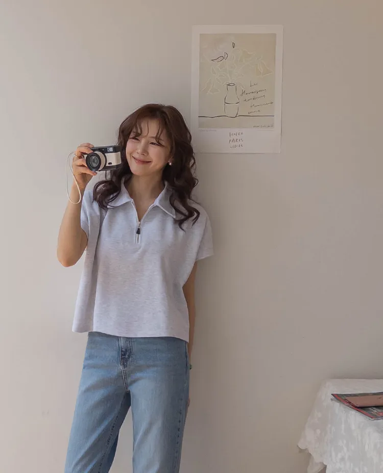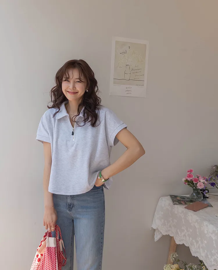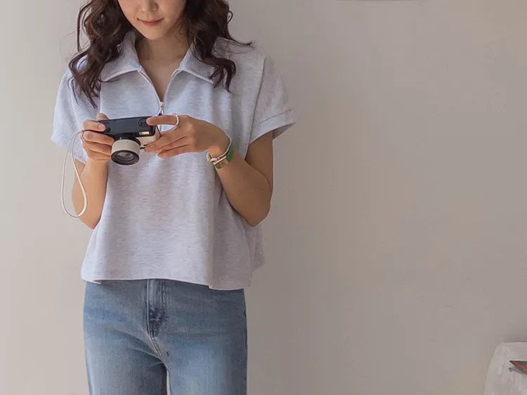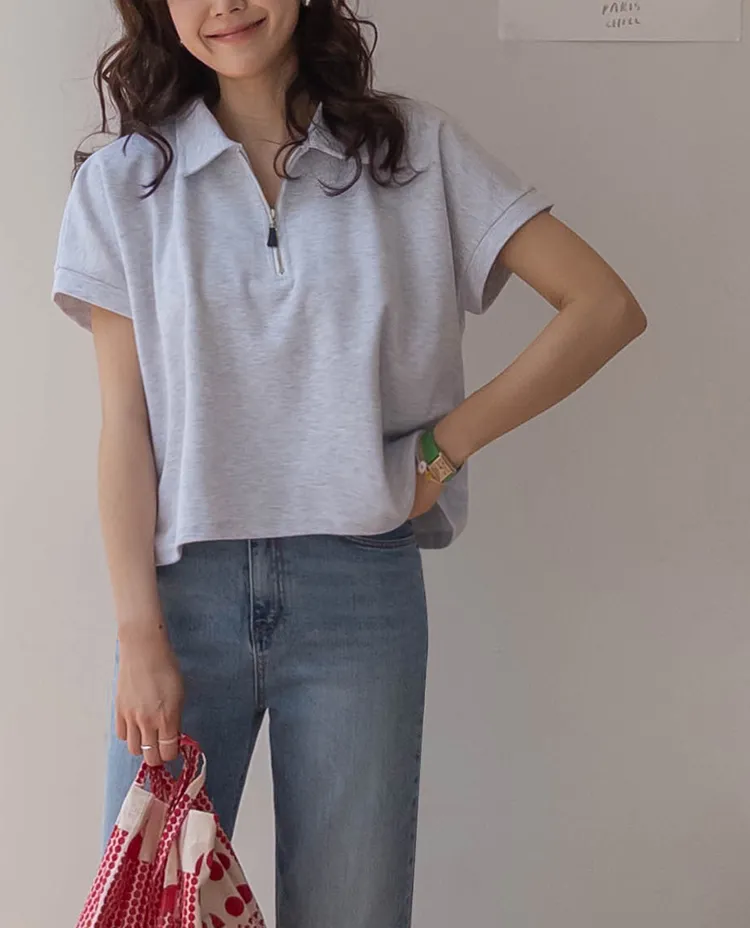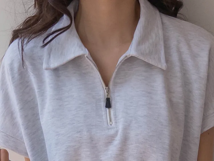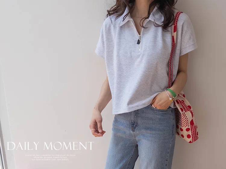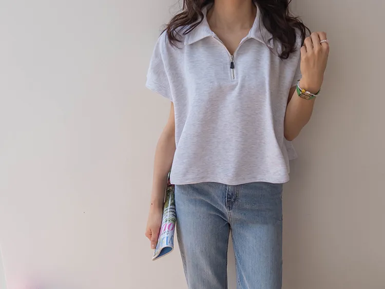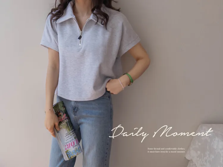 【休閒風格半拉鍊翻領上衣♡】 【半剪裁寬鬆,活潑的氛圍~】 【短袖設計,勾勒出纖細的手臂線條! 】