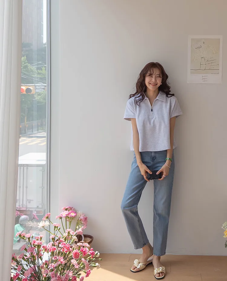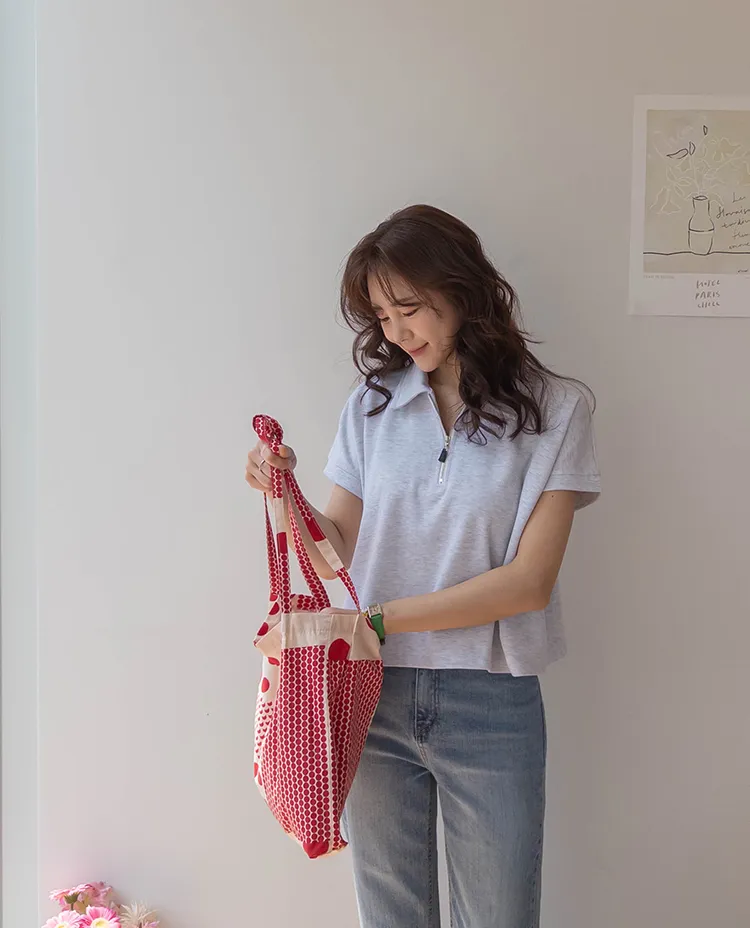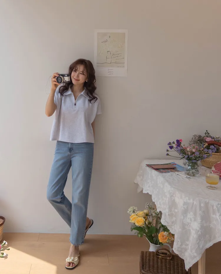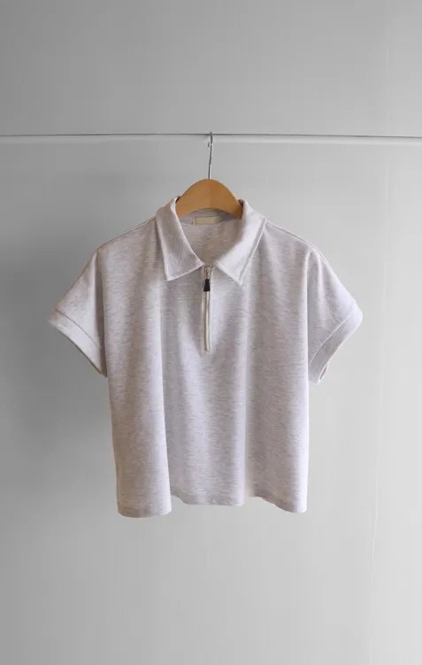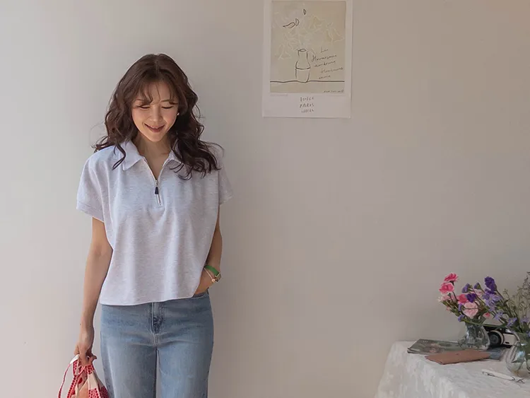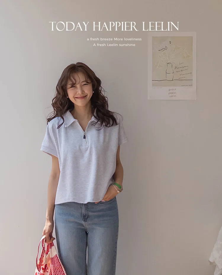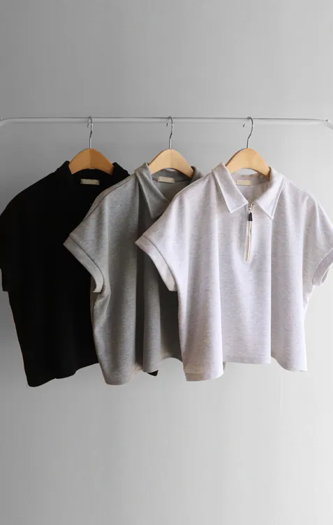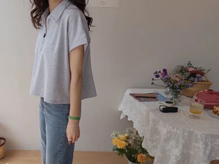 【休閒風格半拉鍊翻領上衣♡】 【半剪裁寬鬆,活潑的氛圍~】 【短袖設計,勾勒出纖細的手臂線條! 】