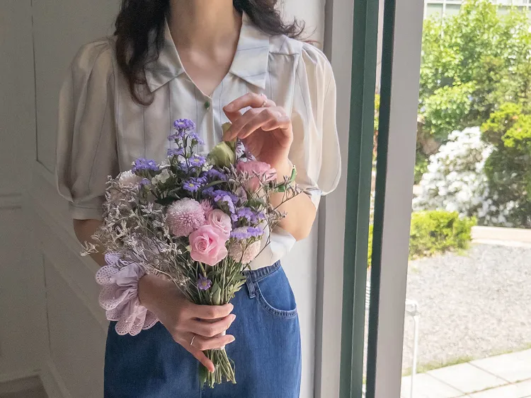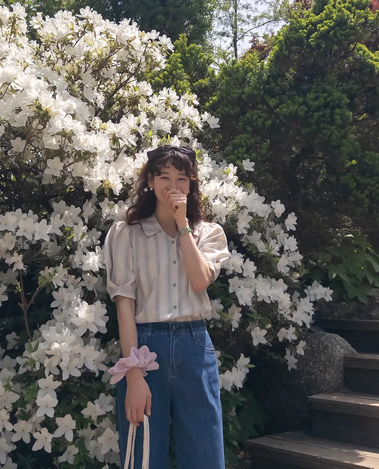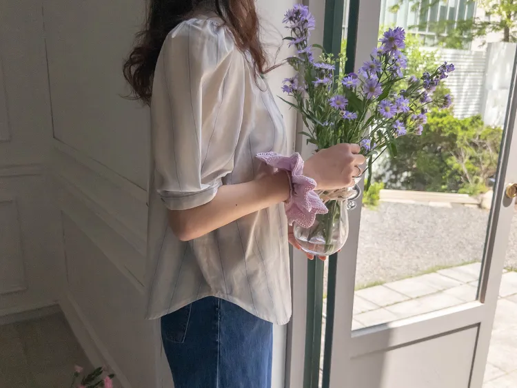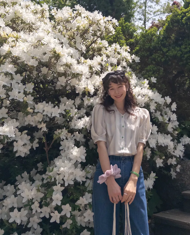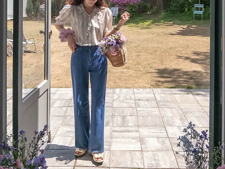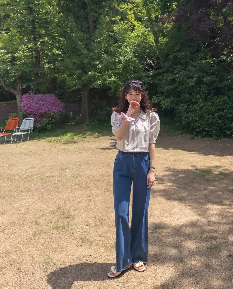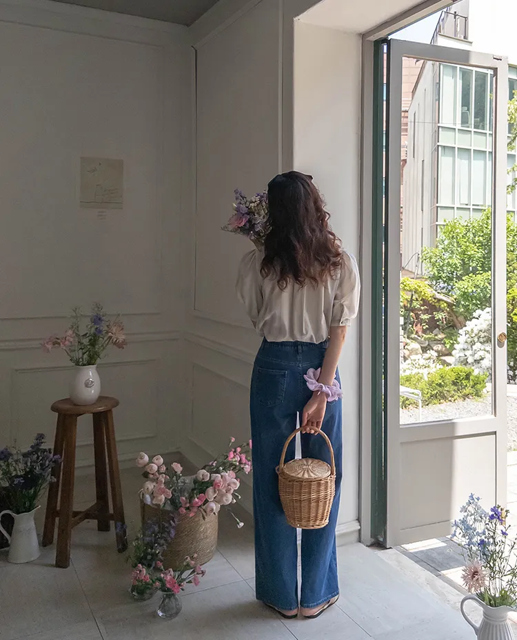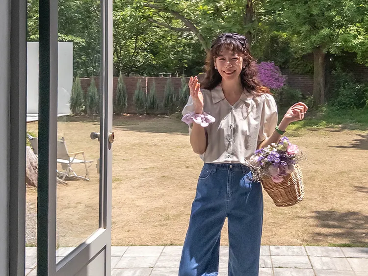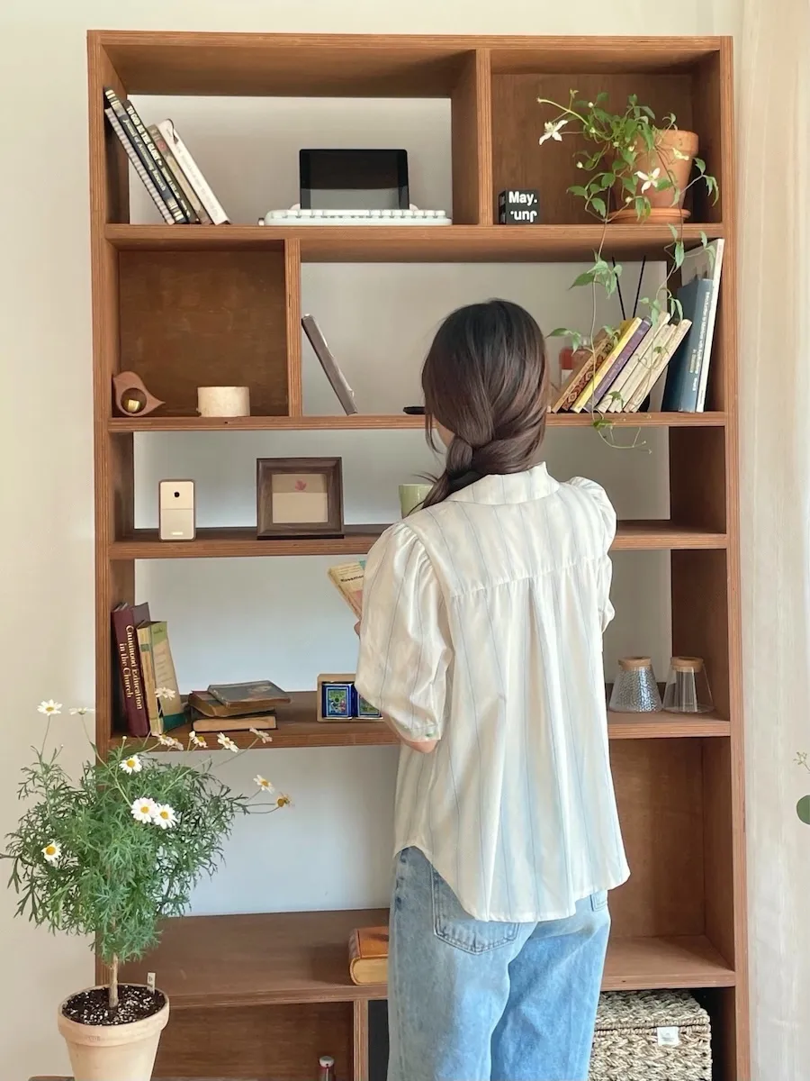 [漸層單色圖案,精緻的排扣上衣♥] [V領設計獨特] [配色豆紐扣設計] [泡泡肩設計,可愛廓形♥]