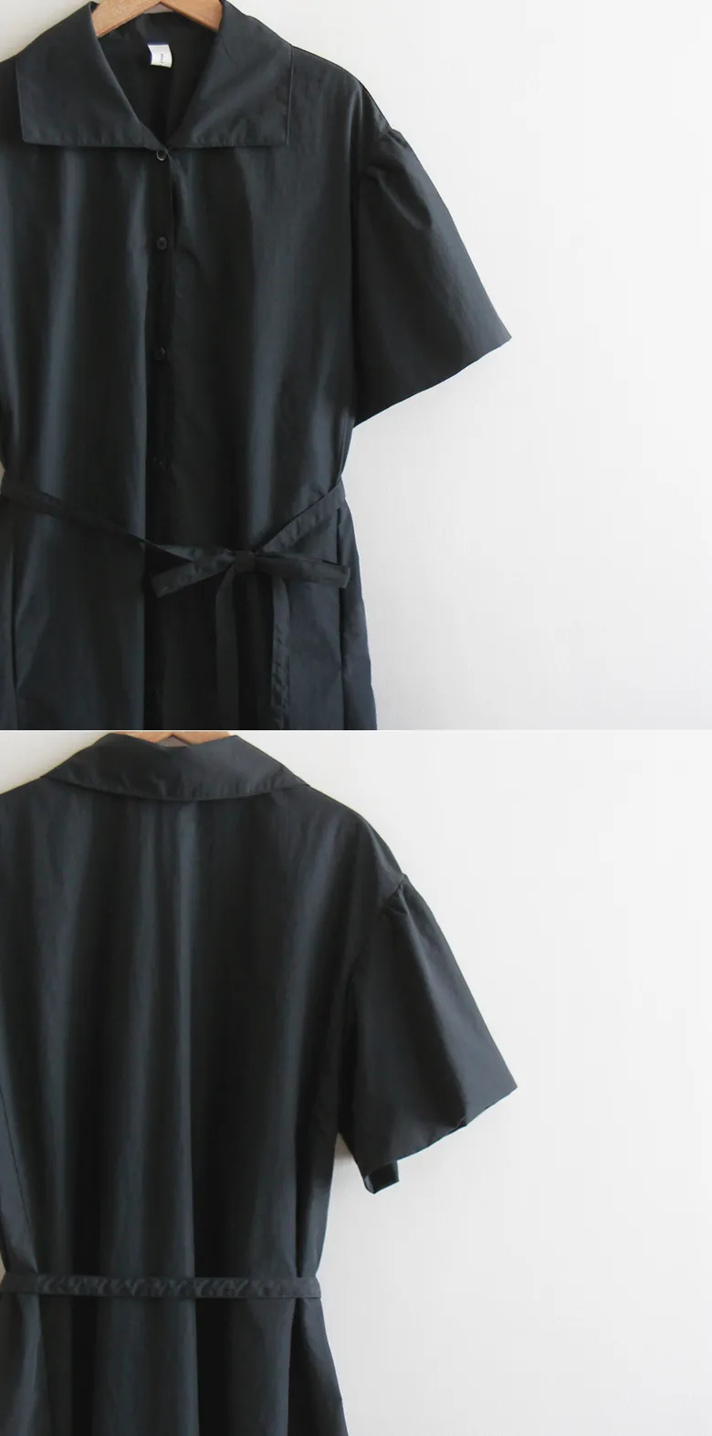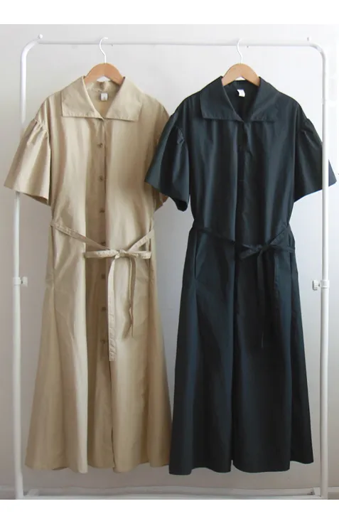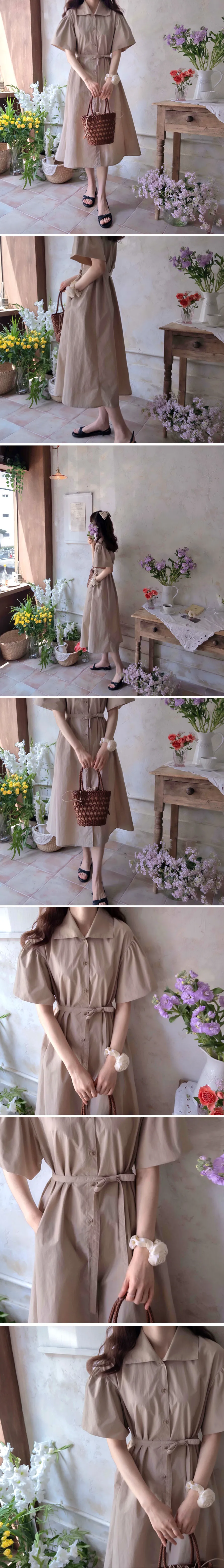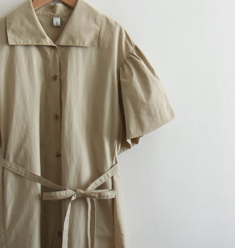 【腰帶組:可拆卸】 【鈕扣帶開合】 【棉25%、尼龍75%,清新夏季涼爽材質】 【領口形狀營造精緻氛圍】 【肩線剪裁,泡泡袖非常漂亮】 【修身線條剪裁,優雅合身夏季連身裙】