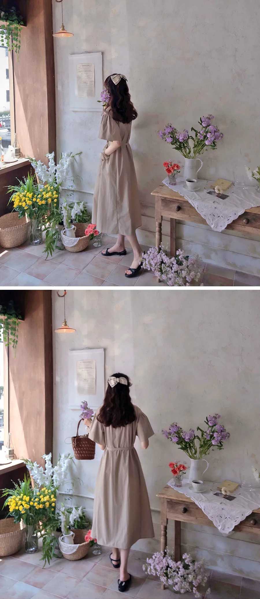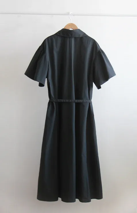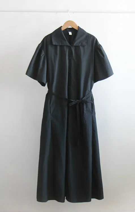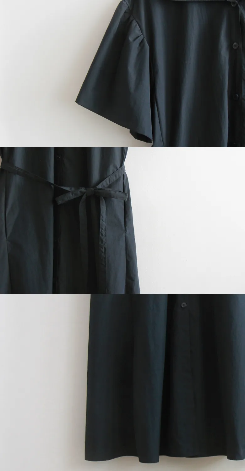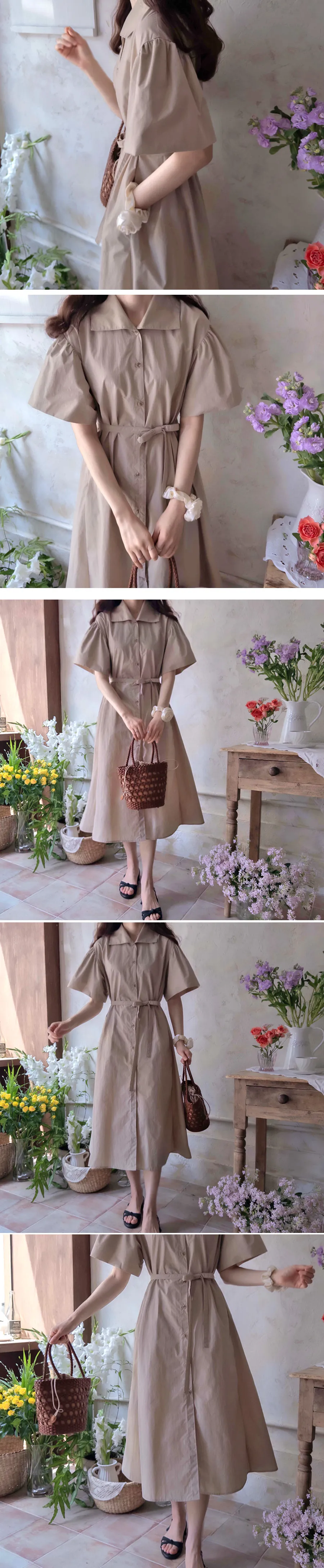 【腰帶組:可拆卸】 【鈕扣帶開合】 【棉25%、尼龍75%,清新夏季涼爽材質】 【領口形狀營造精緻氛圍】 【肩線剪裁,泡泡袖非常漂亮】 【修身線條剪裁,優雅合身夏季連身裙】