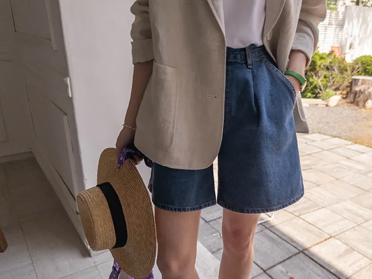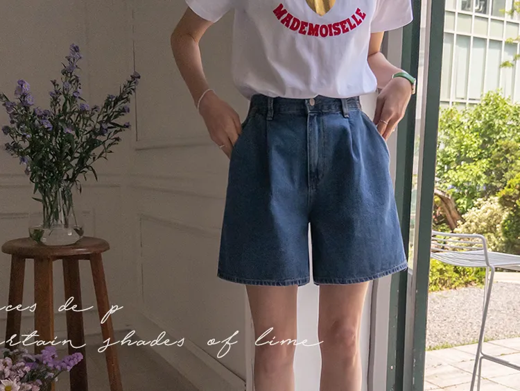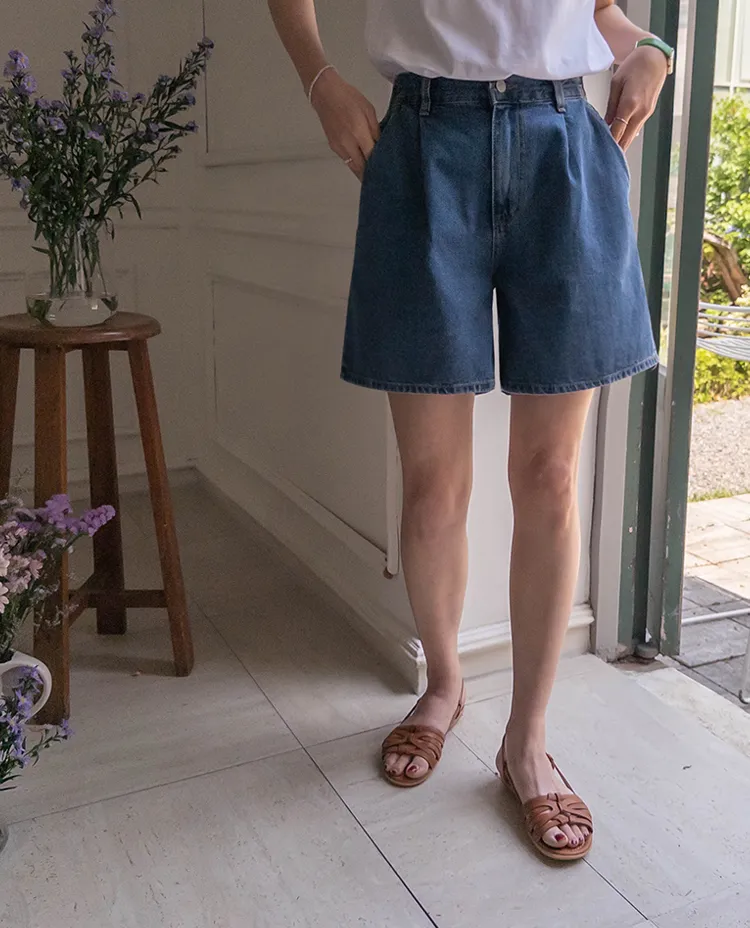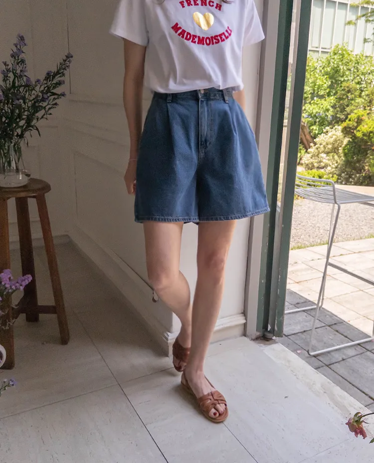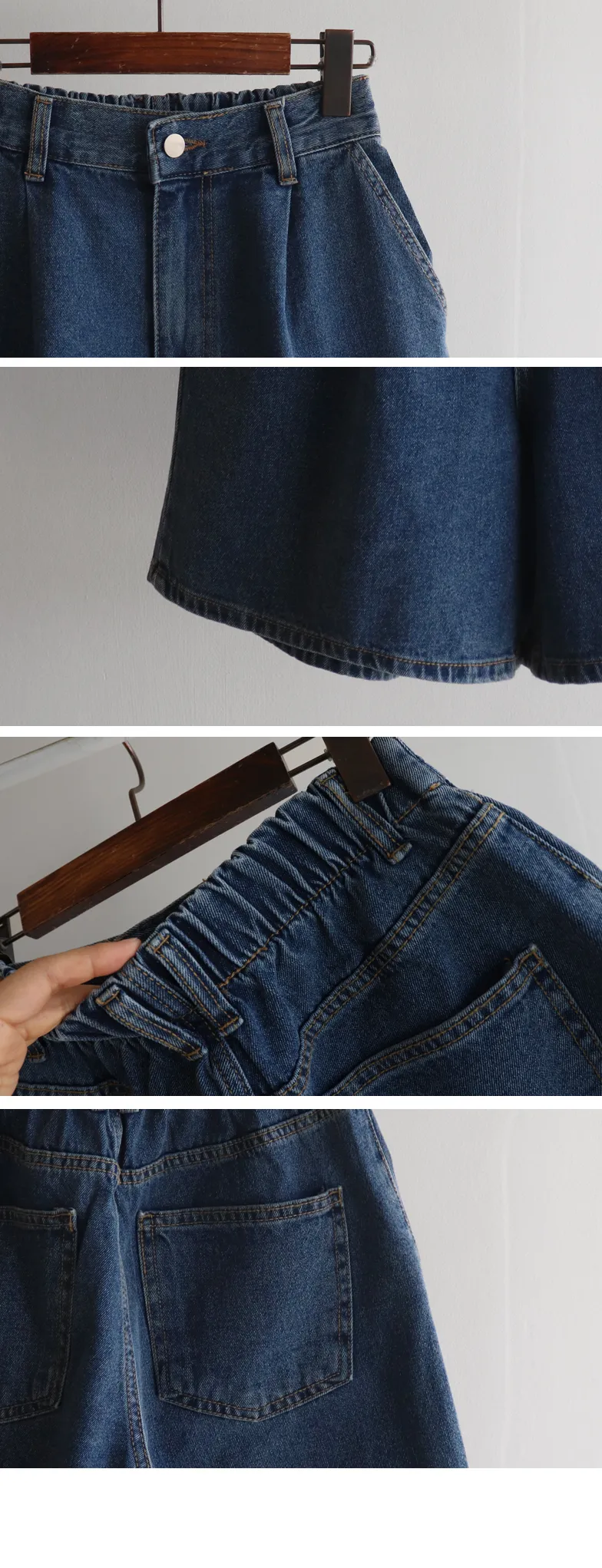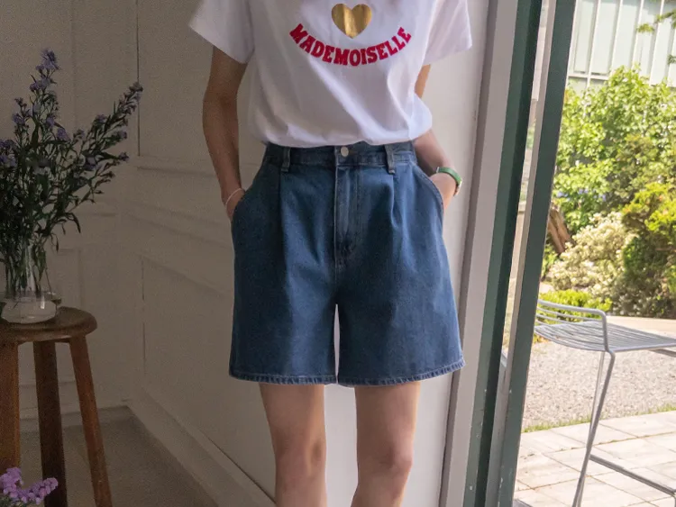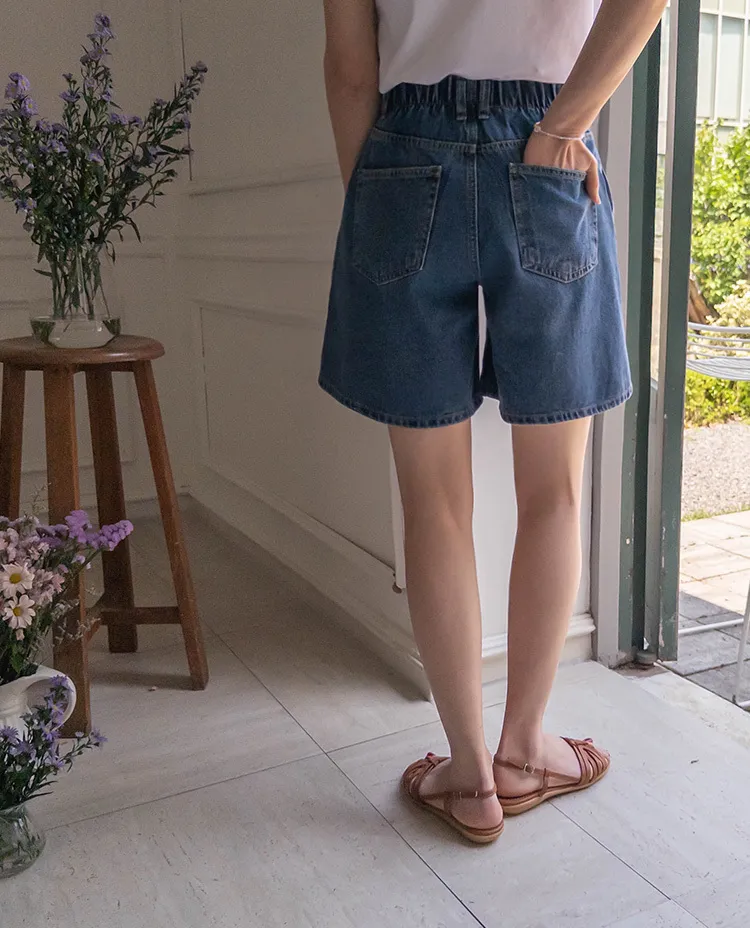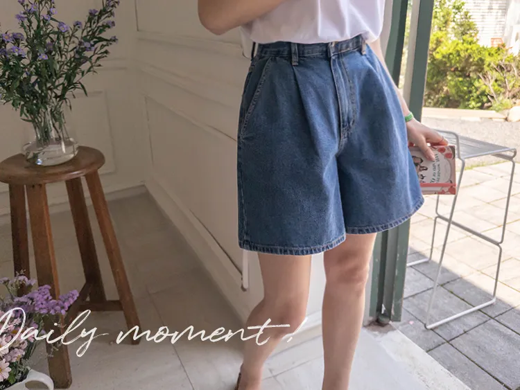 【腿型太完美了!修身牛仔短褲! 】 【一針摺設計,增添立體感~】 【後背採用舒適彈性帶設計,帶來別樣的穿著體驗~】 【從春天到夏天的每日穿搭♥】