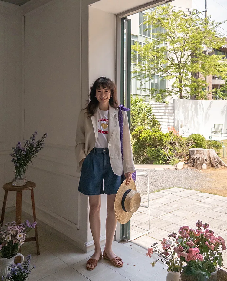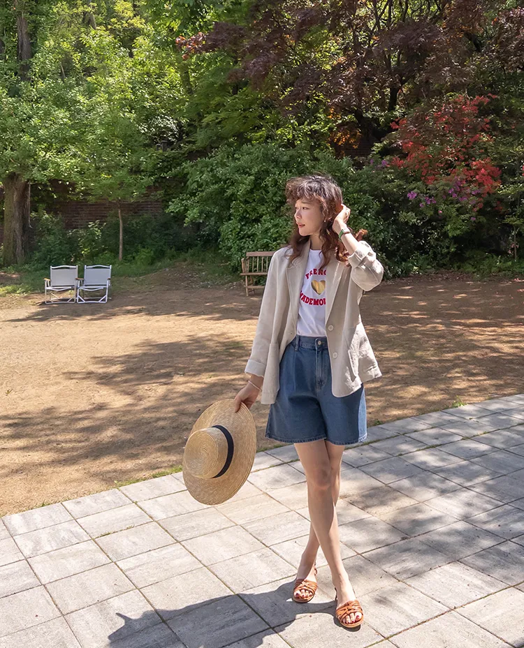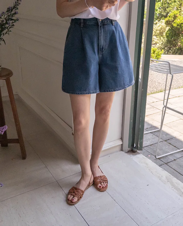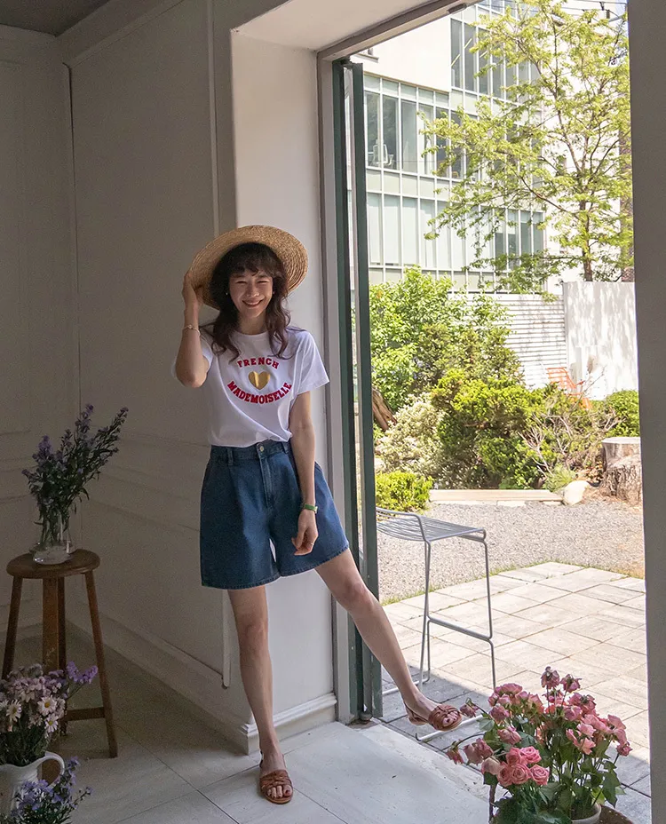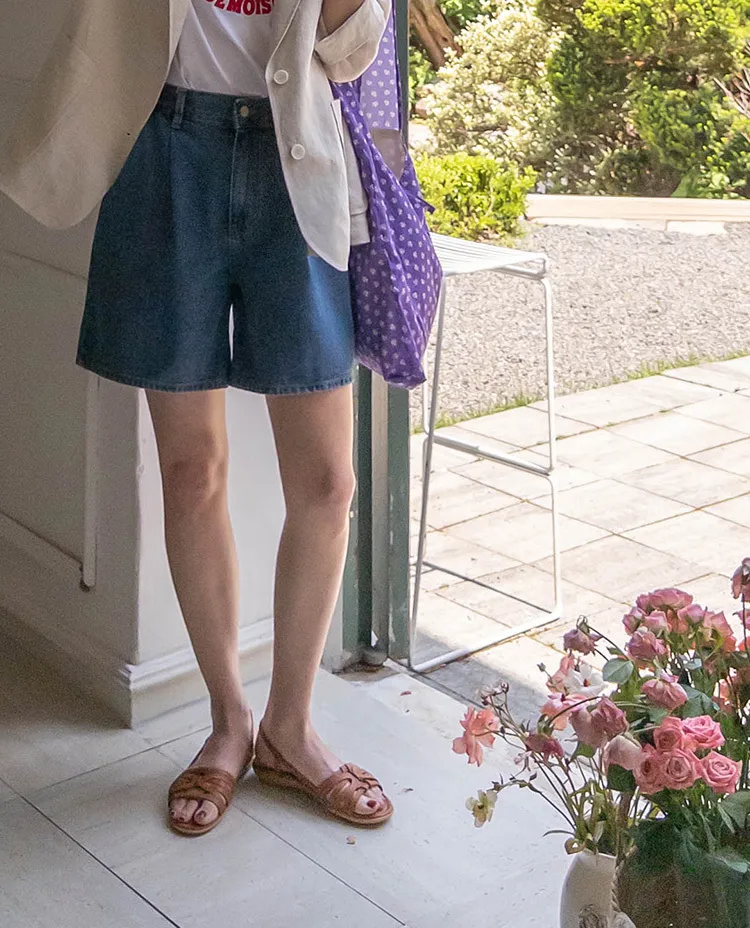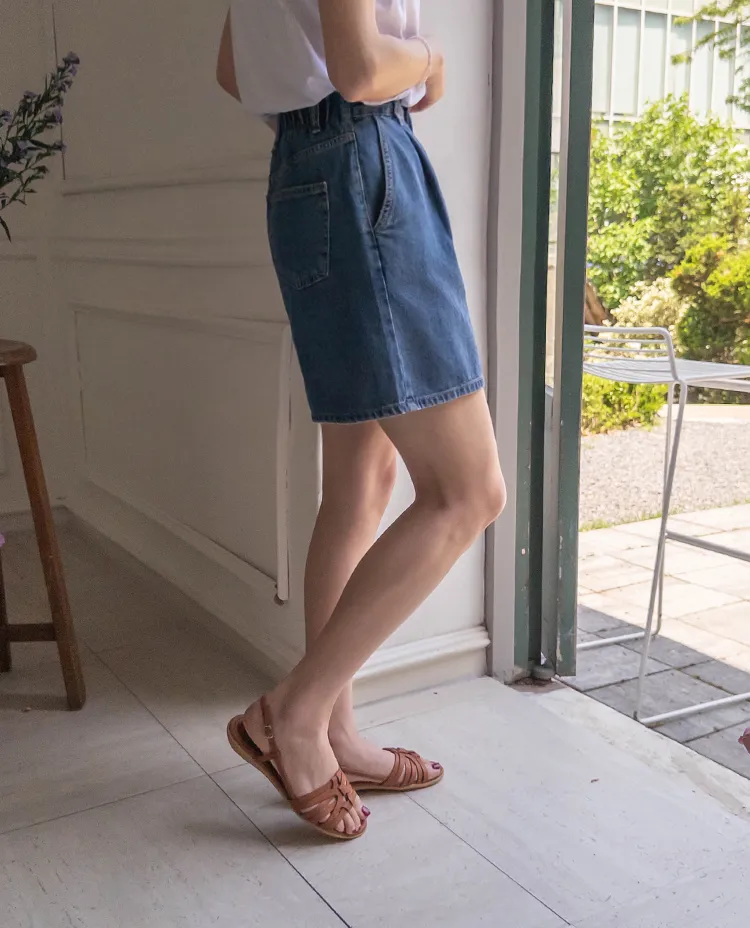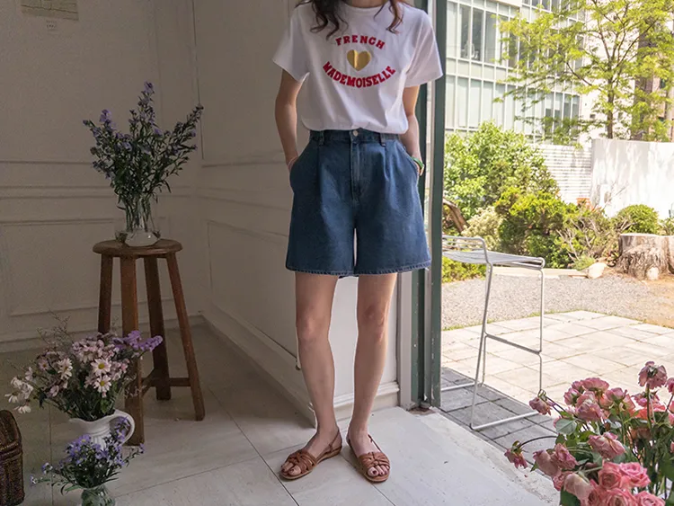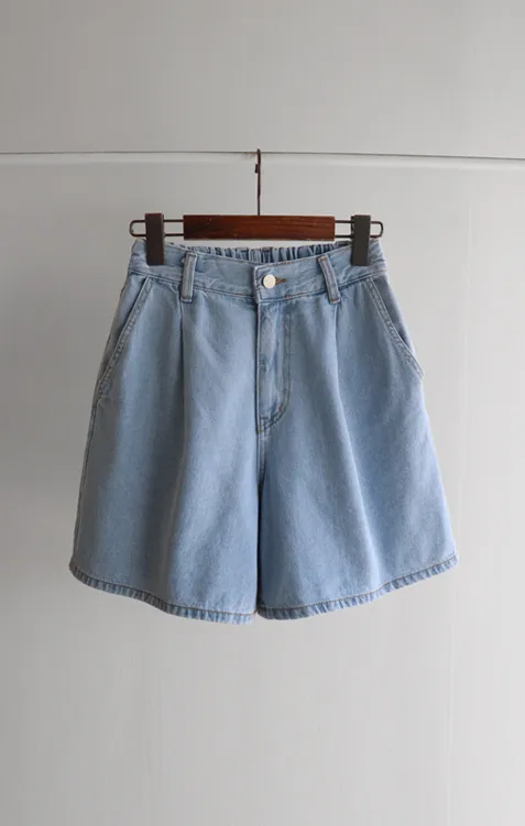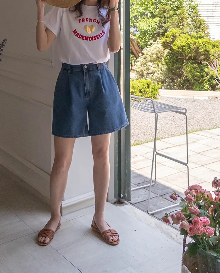 【腿型太完美了!修身牛仔短褲! 】 【一針摺設計,增添立體感~】 【後背採用舒適彈性帶設計,帶來別樣的穿著體驗~】 【從春天到夏天的每日穿搭♥】
