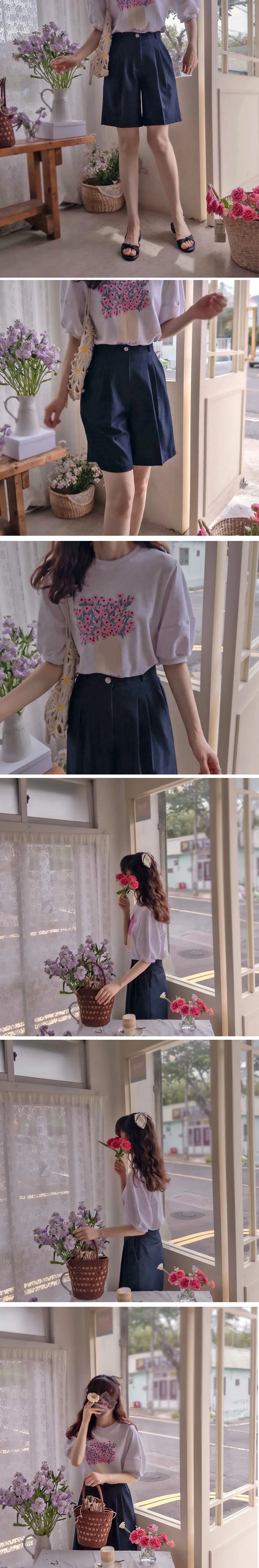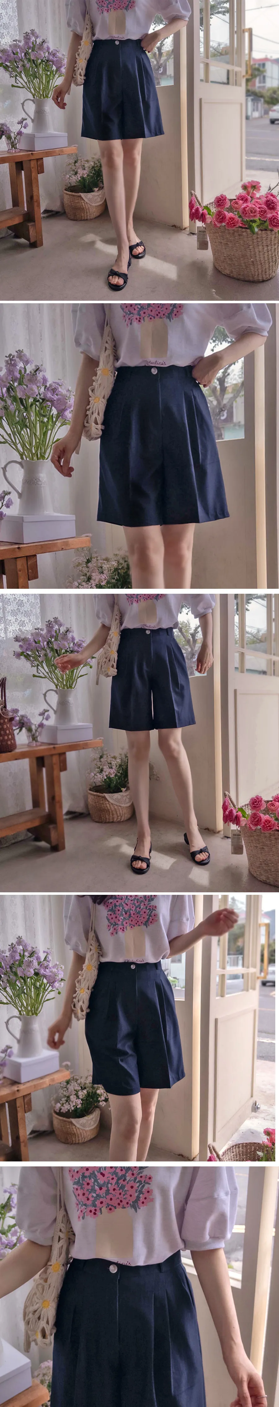 時尚風格夏日清新雙針摺修身短褲