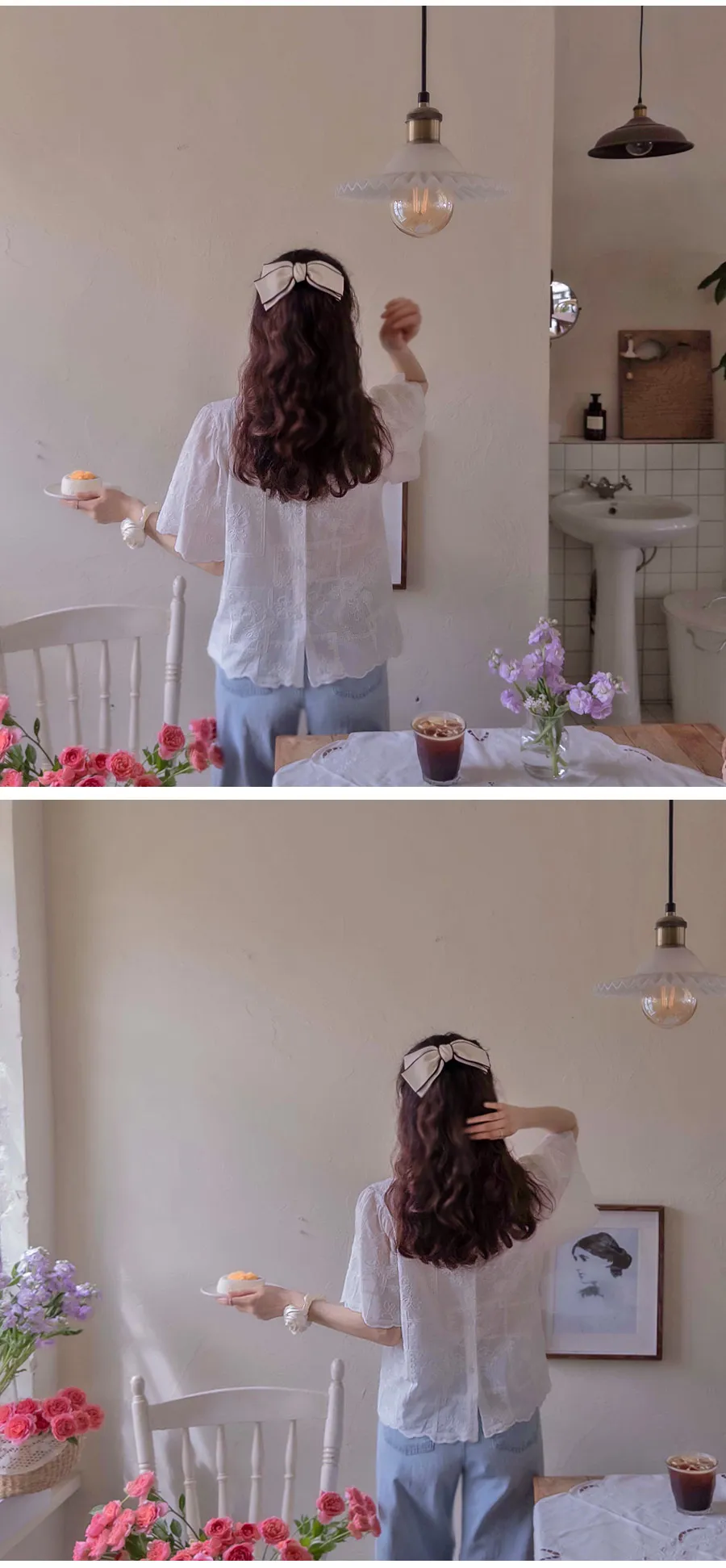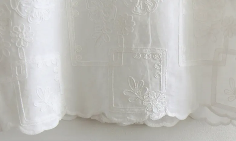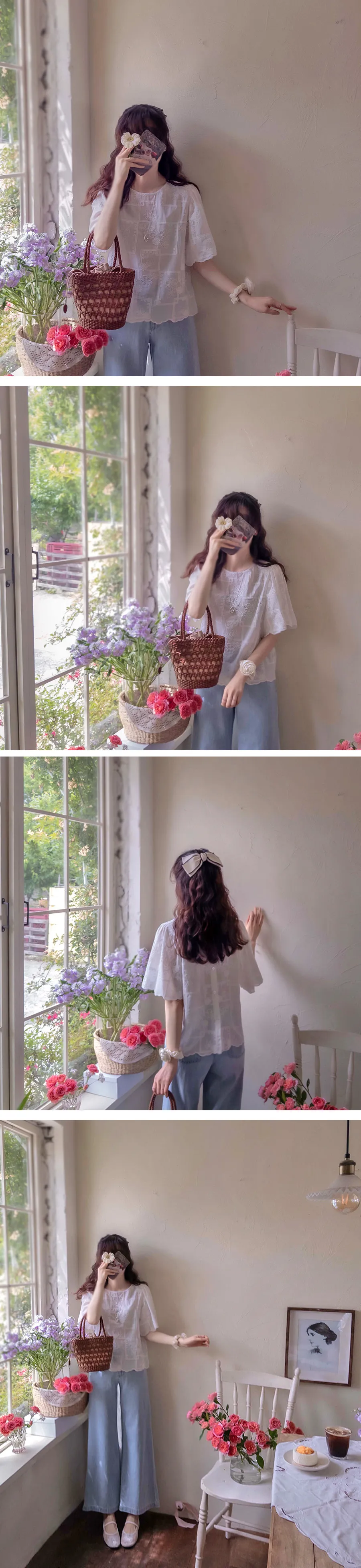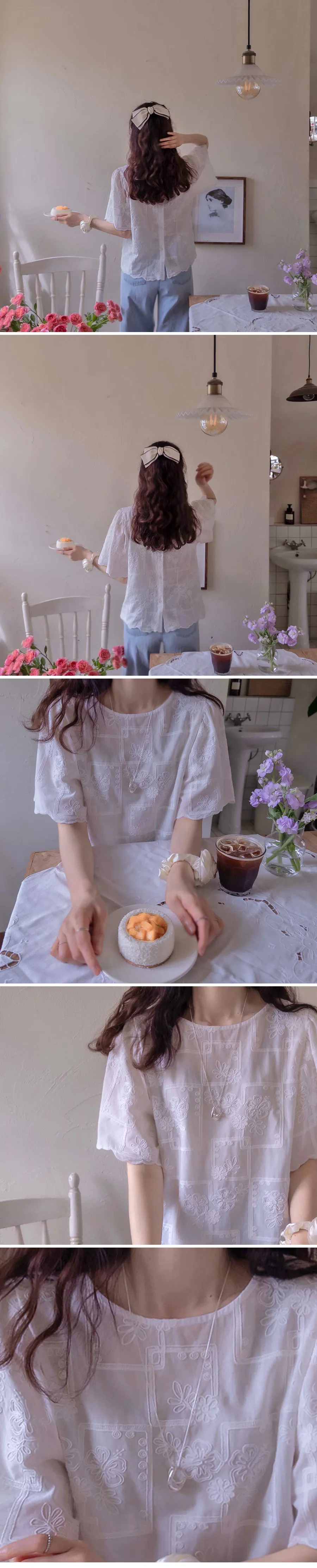 【精緻可愛的花朵刺繡,優雅的上衣】 【下擺和袖口採用波浪形刺繡,營造出精緻氛圍】 【從現在到夏天,明亮又時尚的穿搭上衣】 【精緻立體花朵刺繡非常漂亮】 【明亮又時尚,夏季上衣】