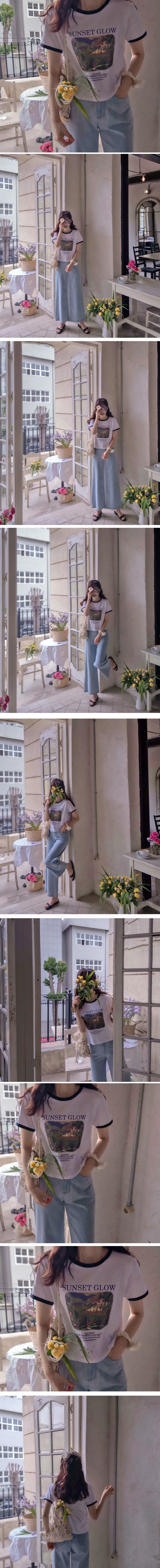 【棉質材質,穿著舒適】 【以夏日風景為主題的T卹】 【適合日常穿著的基本配色】 【領口和袖口的配色非常漂亮】 【作為夏季T卹,穿著舒適,成為焦點】